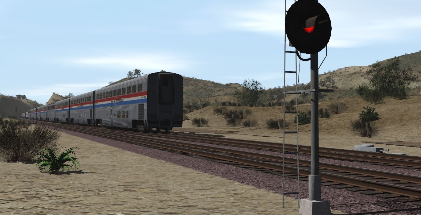 Tags: Trainz Railroad Simulator 2022, Cajon Subdivision - 1990 Part 1: The Pass, Cajon: Early May 1989 Operations, AMTK F40PH ph3 (early), Amtrak III Coach Baggage Superliner, Amtrak III Coach Superliner, Amtrak III Lounge Cafe Superliner, Amtrak III Diner Superliner, Amtrak III Sleeper Superliner, AMTK Hi-Level Transition Car Ph III (Superliner), Amtrak HEP Baggage 1178-1195, Amtrak HEP MHC (Mail), Amtrak HEP Baggage 1133, Amtrak HEP Baggage 1005