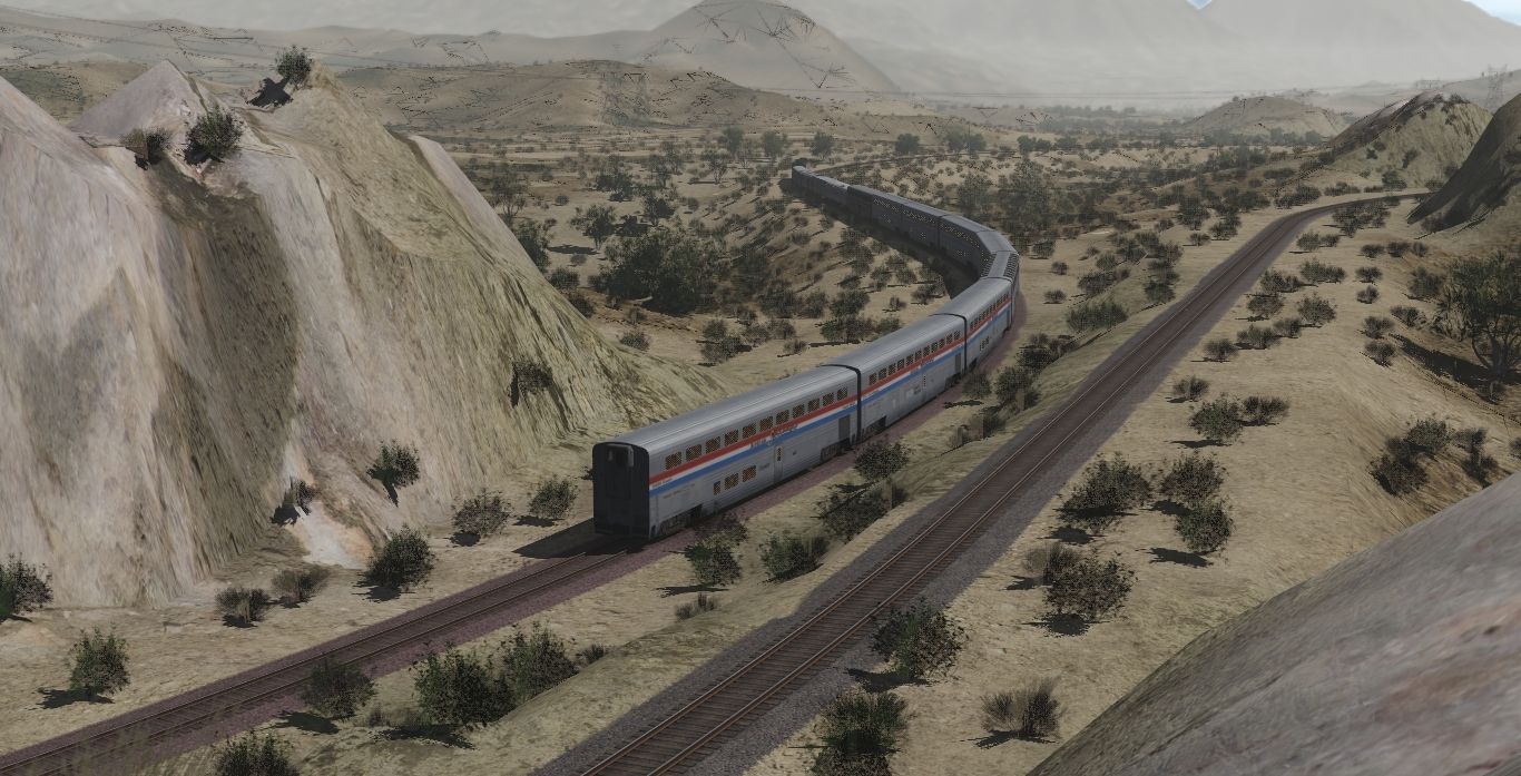 Tags: Trainz Railroad Simulator 2022, Cajon Subdivision - 1990 Part 1: The Pass, Cajon: Early May 1989 Operations, AMTK F40PH ph3 (early), Amtrak III Coach Baggage Superliner, Amtrak III Coach Superliner, Amtrak III Lounge Cafe Superliner, Amtrak III Diner Superliner, Amtrak III Sleeper Superliner, AMTK Hi-Level Transition Car Ph III (Superliner), Amtrak HEP Baggage 1178-1195, Amtrak HEP MHC (Mail), Amtrak HEP Baggage 1133, Amtrak HEP Baggage 1005