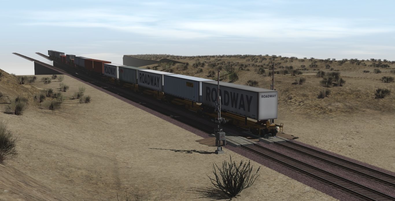 Tags: Trainz Railroad Simulator 2022, Cajon Subdivision - 1990 Part 1: The Pass, Cajon: Early May 1989 Operations, FRED SJVRR, Spinecar A Unit, Spinecar E Unit, Spinecar D Unit, Spinecar C Unit, Spinecar B Unit, FEC Brown 89ft TOFC Flatcar, TTX 89ft ACF AP TOFC Flatcar ASH10A (Brown), TTX 89ft AP TOFC Flatcar TTWX, SOO 89ft BSC COFC Flatcar 1972, MEC 89ft AP TOFC Flatcar ex-PW