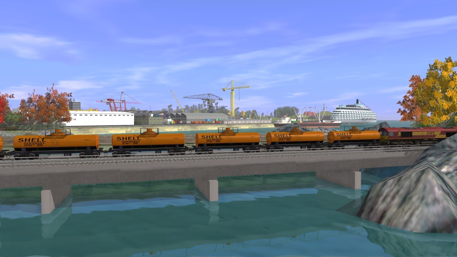 Tags: Trainz: A New Era, 301, 301 Driver, Class 66 EWS, BR Class 31-1 and 31-4 Blue doors2, BR Deltic green, BR Class 57 Freightliner green, BR Class 29 D6124 D6129 D6137 blue yellow ends box hc, AFPW Tanker Shell 0625 Orange, BNSF Flat car 917504, CB Woodchips_Gondola, BR Mk1 SK Blue, Log Wagon Short Knuckle, BR Mk1 RUO Blue