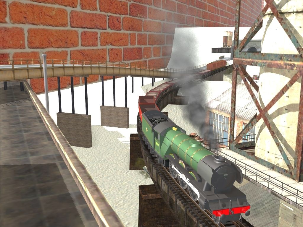 Tags: Trainz: A New Era, Port Loleta Railroad Co - Model Trainz, Default, Gresley A3 BR Green Loco, Gresley Corridor Tender BR Green, NCB 21t Hopper Seaham, Bogie Bolster SO Wagon, Bogie Bolster Crank Wagon, LMS grain hopper, Barge Float Empty, Barge Grain Closed Cover