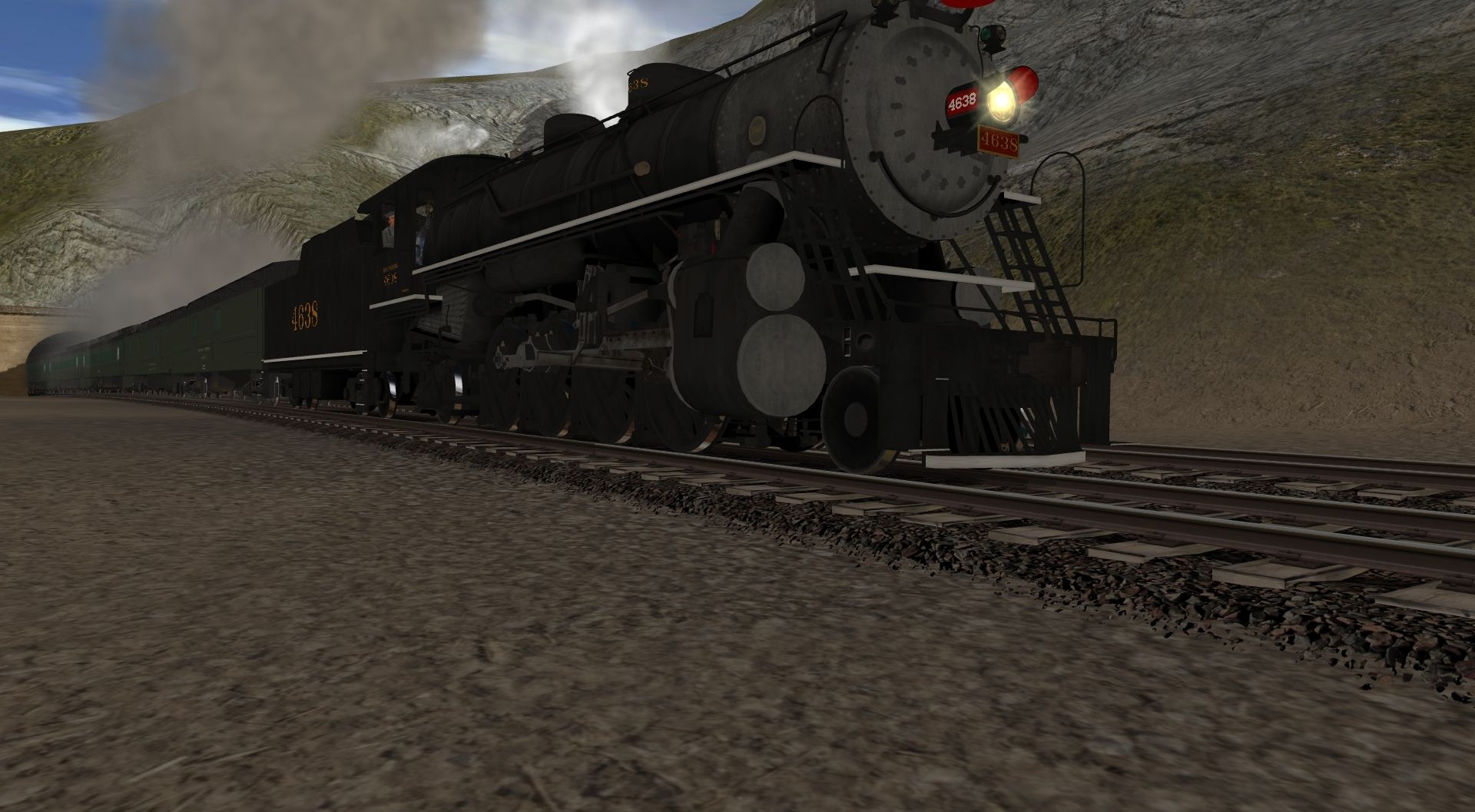 Caption: Southern Ms Class 2-8-2 No. 4638 exiting Lots of Trainz Tunnel at around 16:00:00. Running an Excursion trip. #TrainzScreenshotsNov