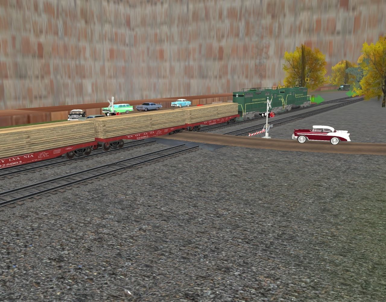 Tags: Trainz: A New Era, 1950 model, PRR GP9, 40ft Boxcar WM 01, 40ft Stockcar C&O 95233 Ant, 40ft Boxcar Union Pacific 126296, PRR FM flat car, 40ft Stockcar C&O 95189 Ant