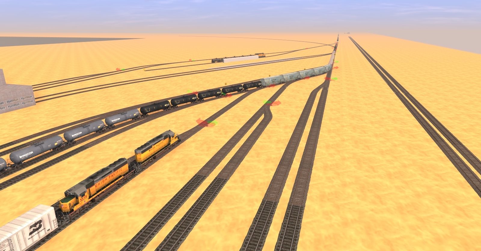 Tags: Trainz: A New Era, Ash Creek Branch, Ash Creek Local - Modern Era, UP SD40-2, UP GP60 #2024, GE ES44AC UP 5353-5553 Weathered, BNFE White PCF 57' Reefer, APA 60Ft.9In. woodchip gondola, Autorack TTGX - BNSF Logo, 20800 gal PROX Tank Car (Sulfuric Acid), ACF 4650 Centerflow Hopper POTX DES, PROX 23000 gal Funnel-Flow tank car black, 20800 gal ADMX Tank Car (Crude Oil), BNSF Alumina hopper