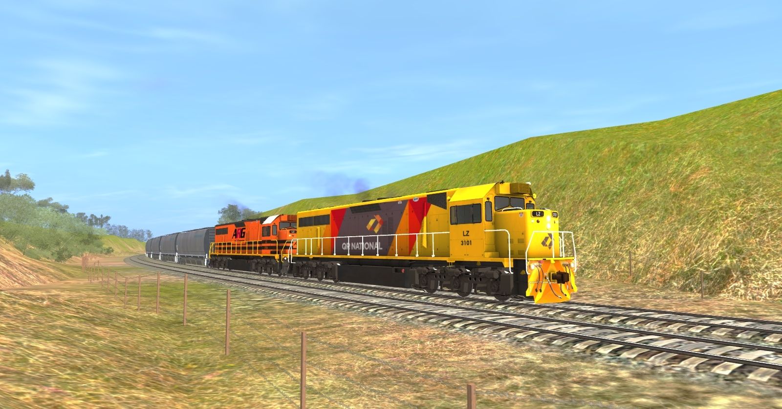 Tags: Trainz: A New Era, Johnny, Johnny - Default, QR National LZ CLass Locomotive LZ3101, ARG QR LZ CLass Locomotive LZ3104, Manildra Group MGFH Flour Hopper