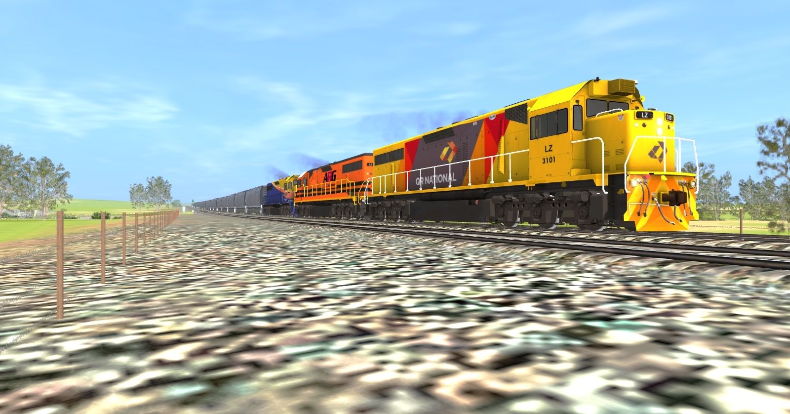 Tags: Trainz: A New Era, P2G + I&SH + BBL, sp, QR National LZ CLass Locomotive LZ3101, ARG QR LZ CLass Locomotive LZ3104, QR National L CLass Locomotive LQ3122, Manildra Group MGFH Flour Hopper