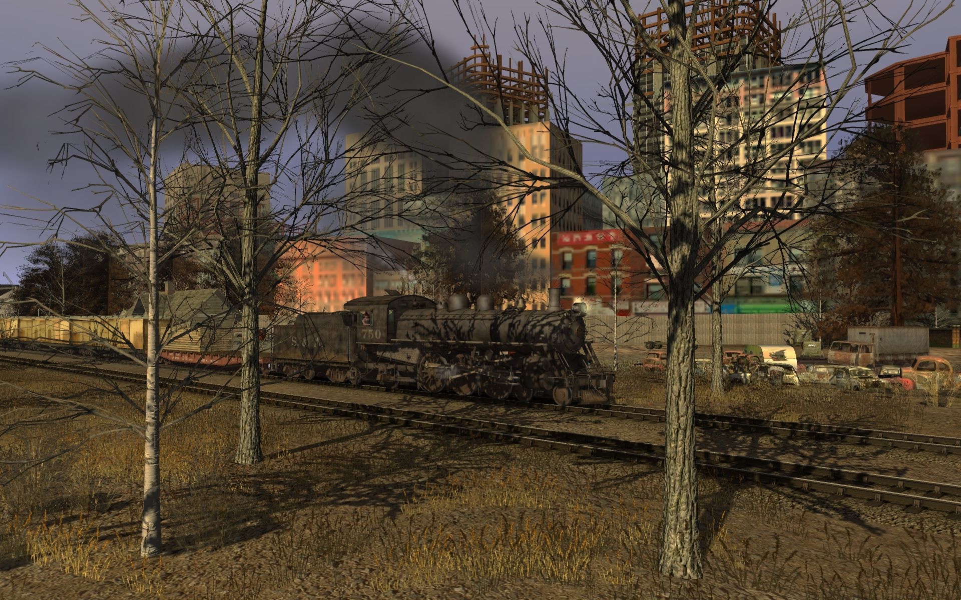Tags: Trainz: A New Era, Whirlpool Rail, Whirlpool Rail Session, Loco S&A 4-6-2 #750, wagon ore horses - walking, Loco S&A 4-6-2 #750 Tender, 50ft up flatcar, NZR Z wagon, CNW F7B #315 derelict, wagon stagecoach - trotting