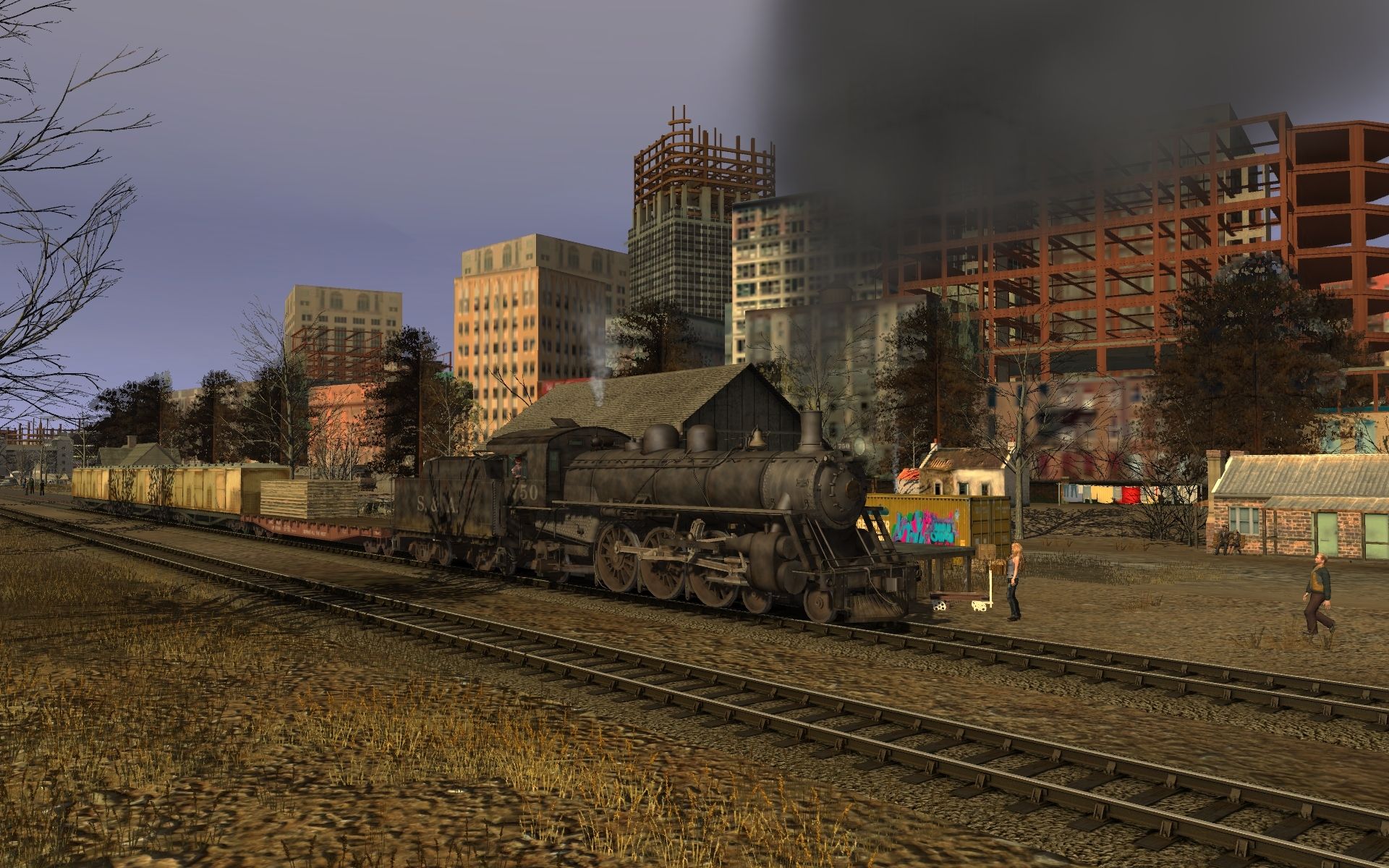 Tags: Trainz: A New Era, Whirlpool Rail, Whirlpool Rail Session, Loco S&A 4-6-2 #750, wagon ore horses - walking, Loco S&A 4-6-2 #750 Tender, 50ft up flatcar, NZR Z wagon, CNW F7B #315 derelict, wagon stagecoach - trotting