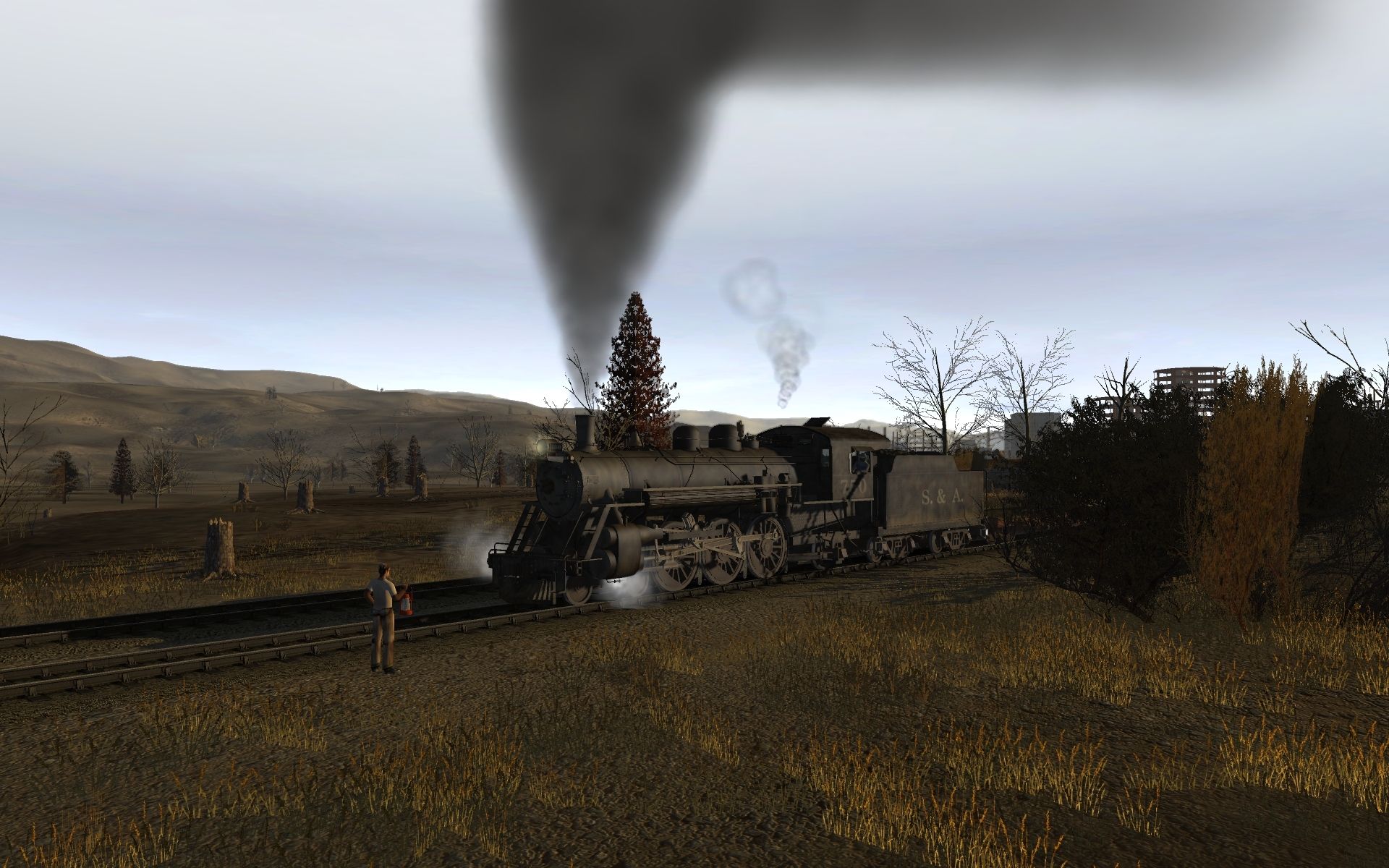 Tags: Trainz: A New Era, Whirlpool Rail, Whirlpool Rail Session, Loco S&A 4-6-2 #750, wagon ore horses - walking, Loco S&A 4-6-2 #750 Tender, 50ft up flatcar, CNW F7B #315 derelict, NZR Z wagon, wagon stagecoach - trotting