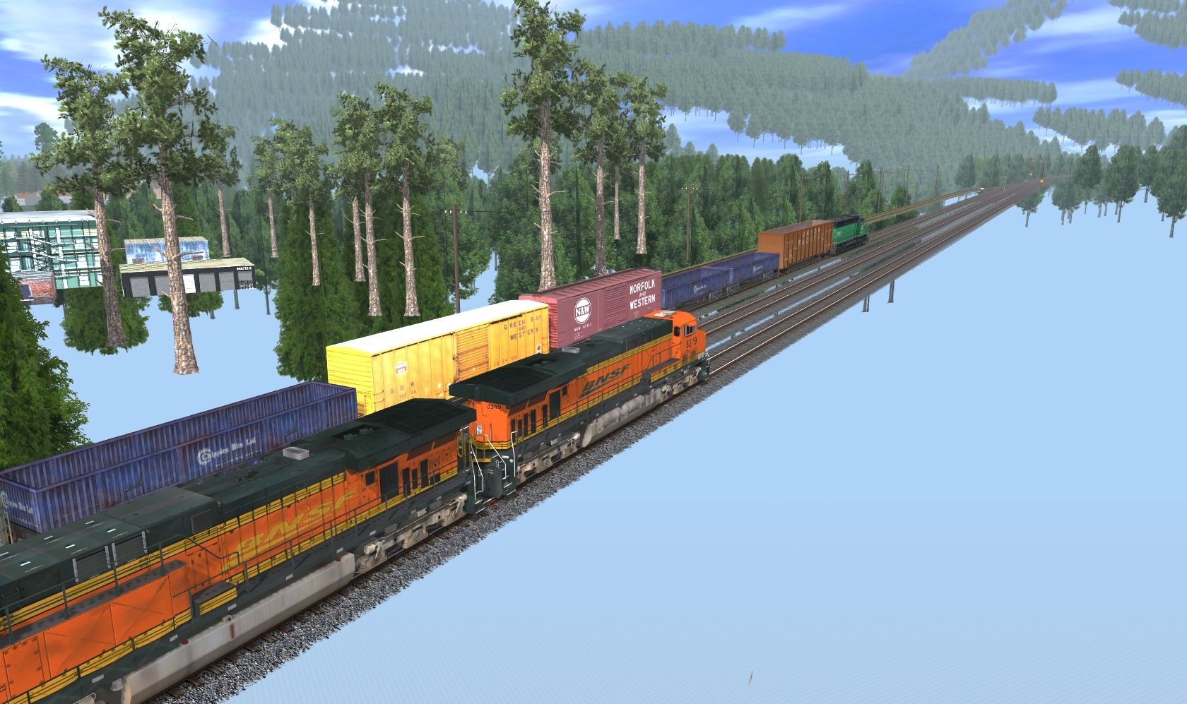 Tags: Trainz: A New Era, Marias Pass Route X, Eastbound Intermodal (TANE Ready), GE ES44AC BNSF H2, GE ES44DC BNSF #7695, GE ES44AC BNSF H3, SD40-2_BN #8093 HP, 50ft Boxcar BN #244626, EWSL Husky Stack 45, 50ft Boxcar GBW #16256, 50ft Boxcar N&W 42612, CB Woodchips_Gondola, Union Pacific 61ft Woodchip Gondola, Flatcar 89 ft TTX for Trailers DES