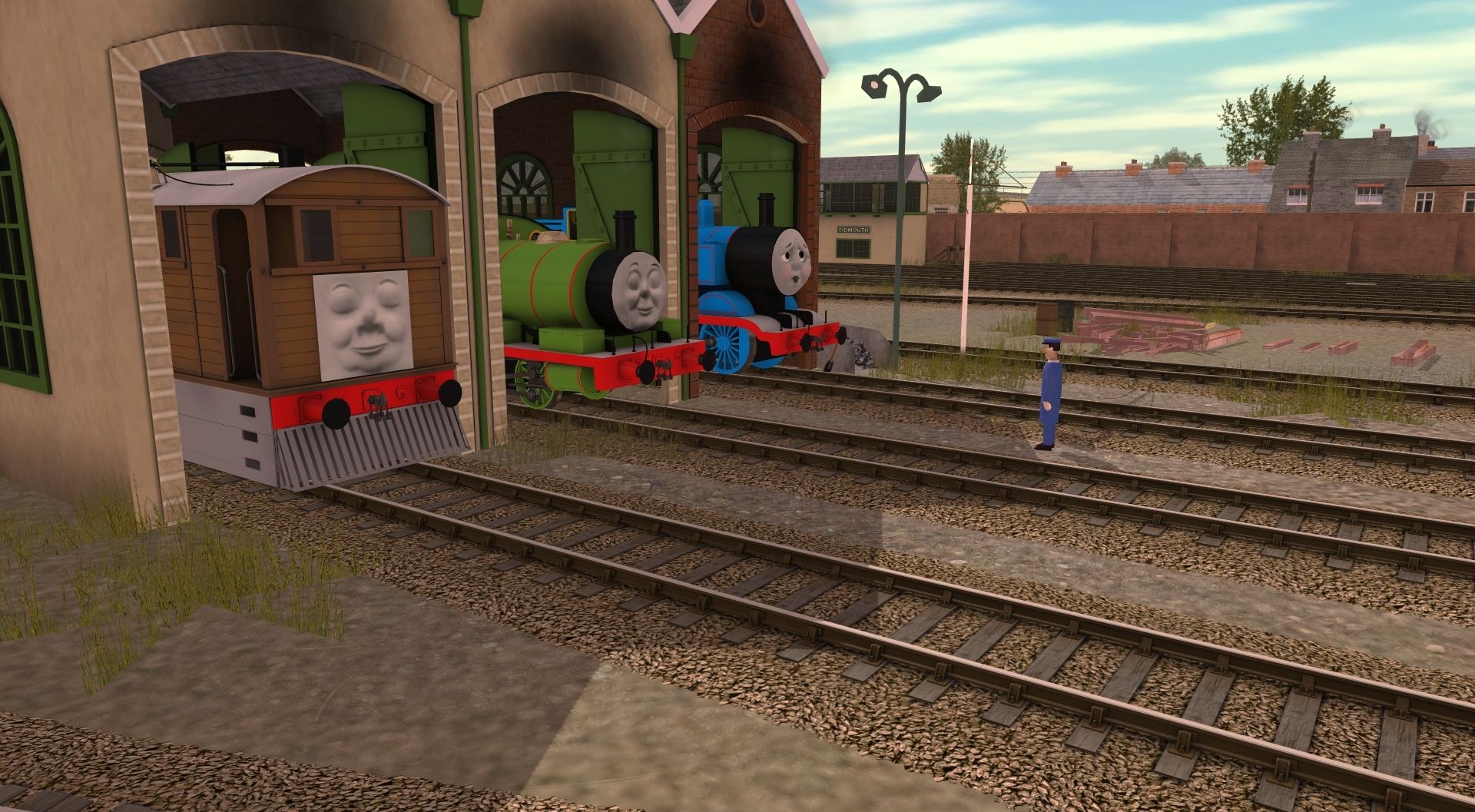 Tags: Trainz: A New Era, IoS - The Kellsthorpe Extension, Scene one, Toby The Tram Engine 2010, Percy The Small Engine 2010, Thomas The Tank Engine 2012, Sodor Brake Van Type 1a, Troublesome Truck - Grey (Large Face), Troublesome Truck - Grey (Small Face)