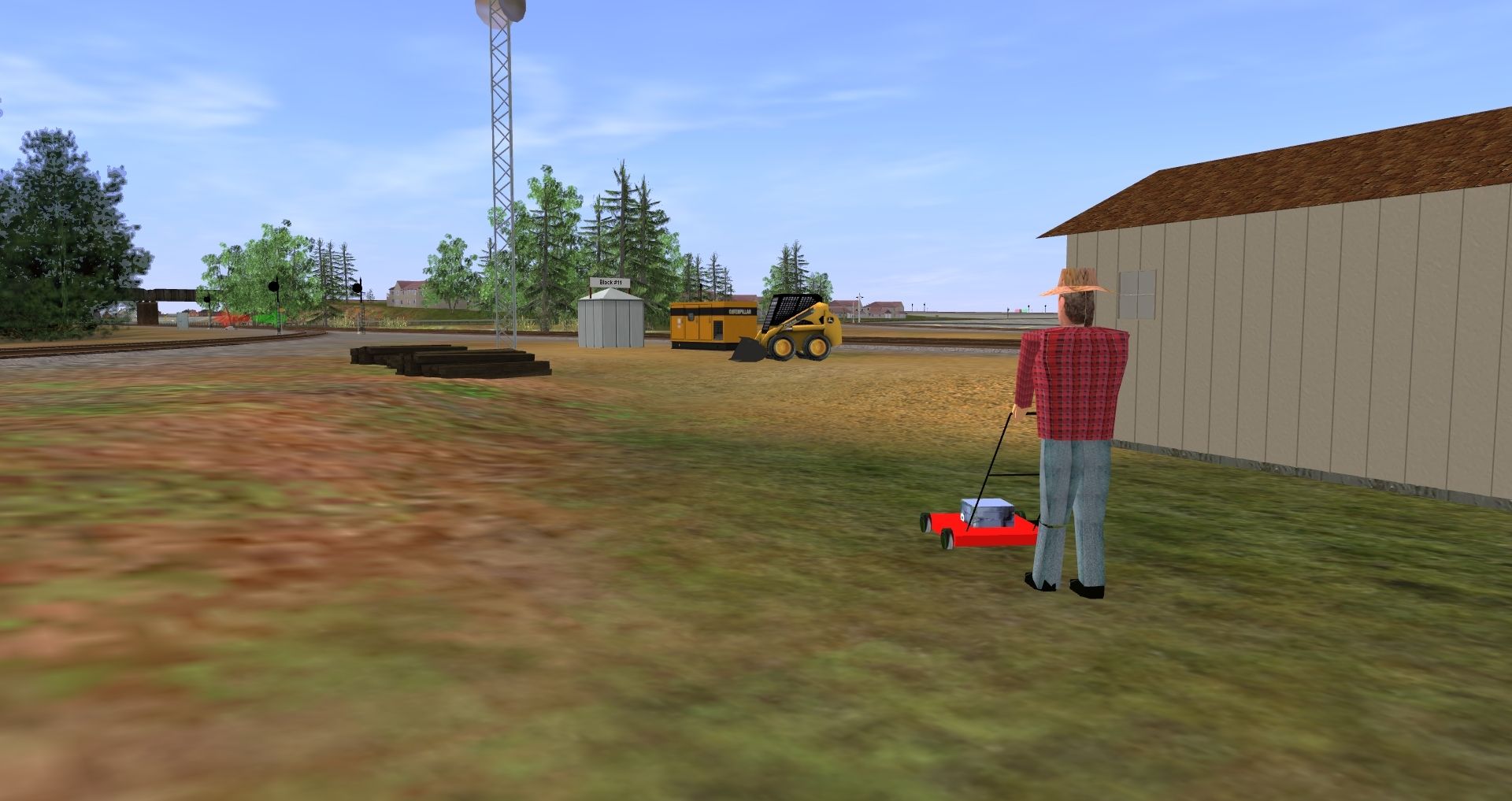 Posted by: Christopher824 | Posted:2017-11-18 01:24:34 Caption: Stinky Pond Cutting Grass Tags: Trainz: A New Era, CJD T Intersection LH, Default, Amtrak F40PH 398