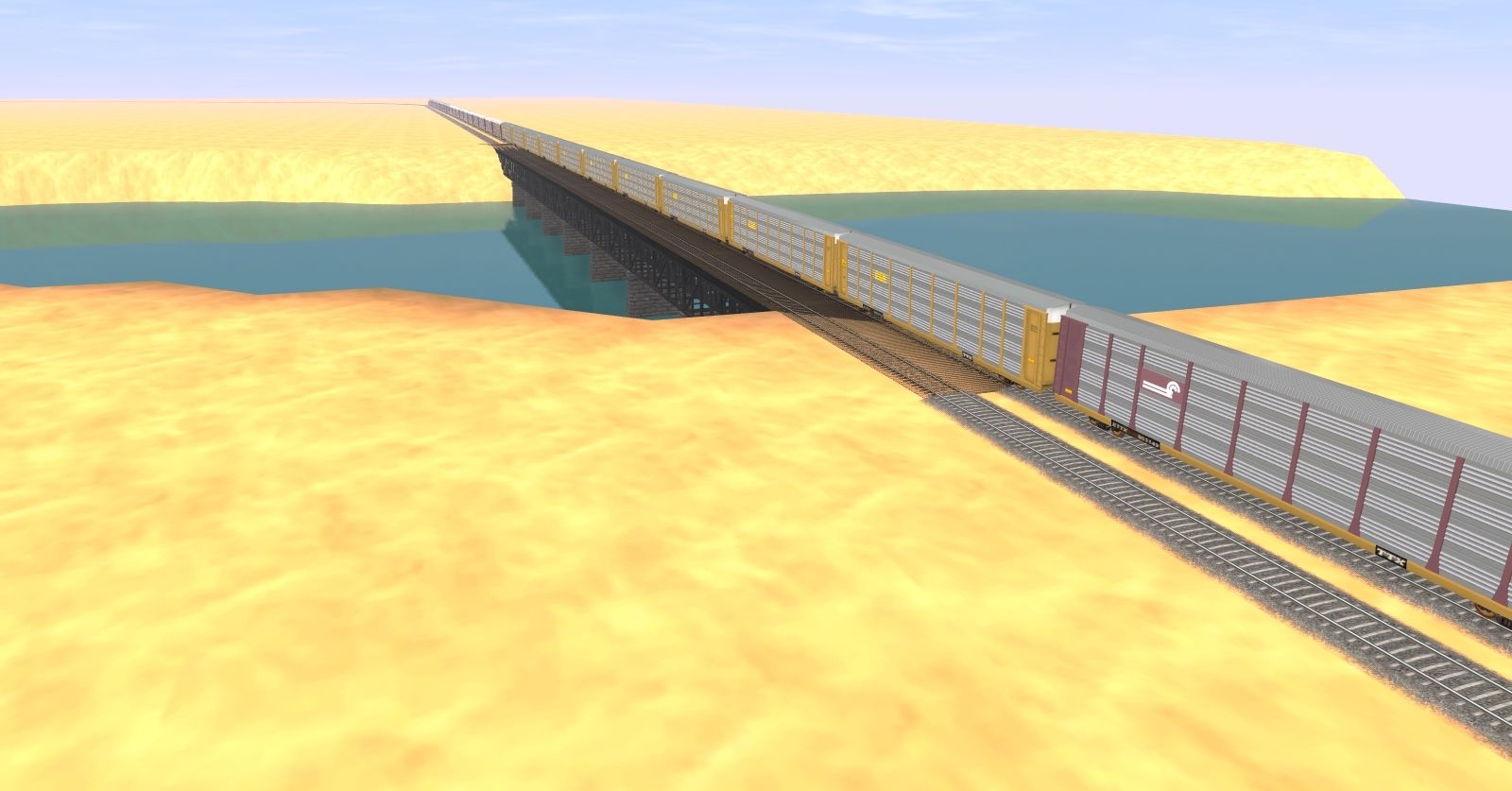 Tags: Trainz: A New Era, E Trains Railroad, E Trains RR - UP Run Through Manifest, EMD SD40T-2 SP Snoot #8364, EMD SD40T-2 SP #8543, EMD SD45T-2 SSW #9375, Tri-level ETTX Autorack CSX, Tri-level ETTX Autorack CONRAIL, 89Ft Autorack mopac v1, Tri-level ETTX Autorack NS, 89Ft Autorack mopac v2, Tri-level ETTX Autorack UP, SP C50-9 Caboose, Tri-level ETTX Autorack TTX