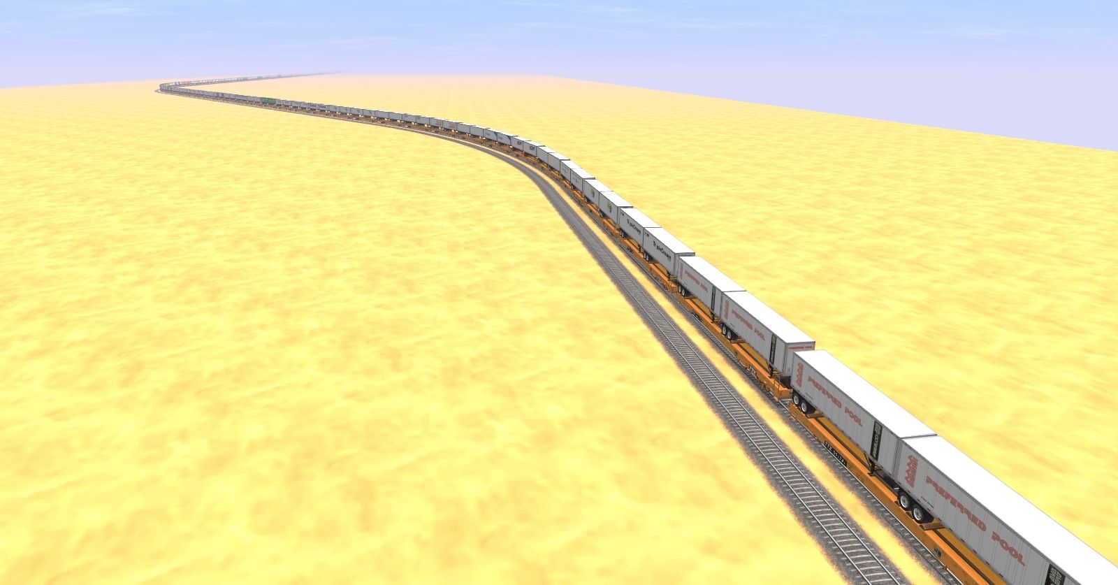 Tags: Trainz: A New Era, E Trains Railroad, E Trains RR - UP Run Through Manifest, BN SD40-2, Flatcar 89 ft TTX for Trailers DES, BN Caboose