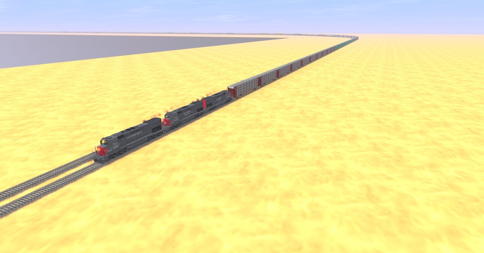 Tags: Trainz: A New Era, E Trains Railroad, E Trains RR - UP Run Through Manifest, EMD SD45T-2 SSW #9375, EMD SD40T-2 SP #8543, EMD SD40T-2 SP Snoot #8364, BN SD40-2, Tri-level ETTX Autorack ATSF, Tri-level ETTX Autorack BN, Tri-level ETTX Autorack CONRAIL FULL, BN Caboose, Tri-level ETTX Autorack NS FULL, Tri-level ETTX Autorack TTX, Tri-level ETTX Autorack UP