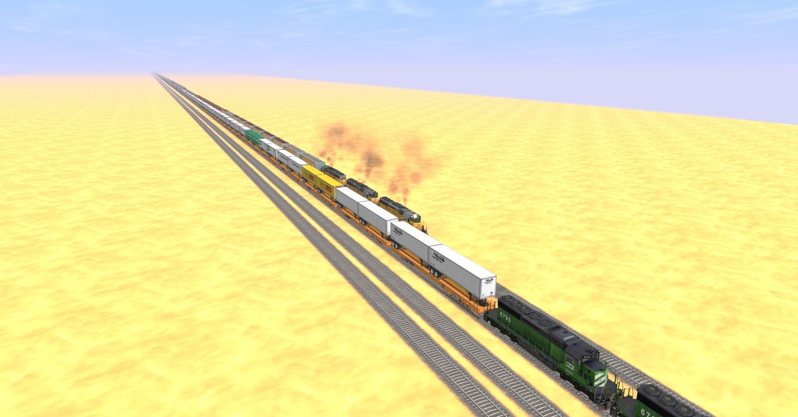 Tags: Trainz: A New Era, E Trains Railroad, E Trains RR - UP Run Through Manifest, BN SD40-2, UP SD40-2, Flatcar 89 ft TTX for Trailers DES, UP 60' ACF Boxcar, TUME-300554-Covered-Hopper-ATSF, TUME-300596-Logging-Flatcar-UP, TUME-300583-Centerbeam-WP, TUME-300514-Boxcar-50ft-CN, union pacific 50ft flatcar, Union Pacific Bulk Hopper, 20800 gal PROX Tank Car (Sulfuric Acid)