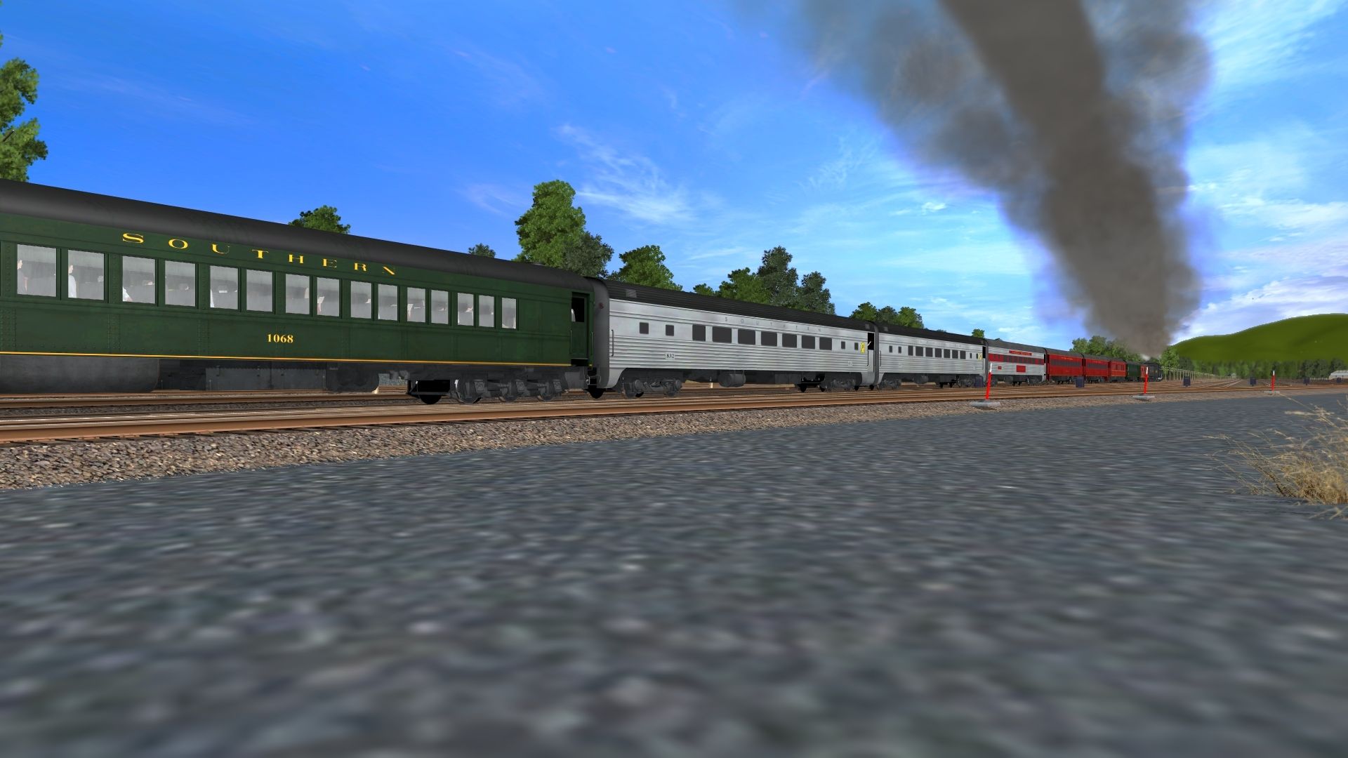 Tags: Trainz: A New Era, WM & B&O Mega Route Tane, 765 on CSX to WMSR, NKP Berkshire Engine, CSX GP40-2 YN3, CSX GP38-2 YN-2 (ex-SCL), WMSR 734 Engine, BL2 Western Maryland 82 Speedlettering, GP40 Western Maryland 3796 Speedlettering, Southern Coach 1084 Heavyweight, Southern Coach 1068 Archroof, Southern Coach 1081 Heavyweight, Southern Coach 832 Lounge, B&O dome