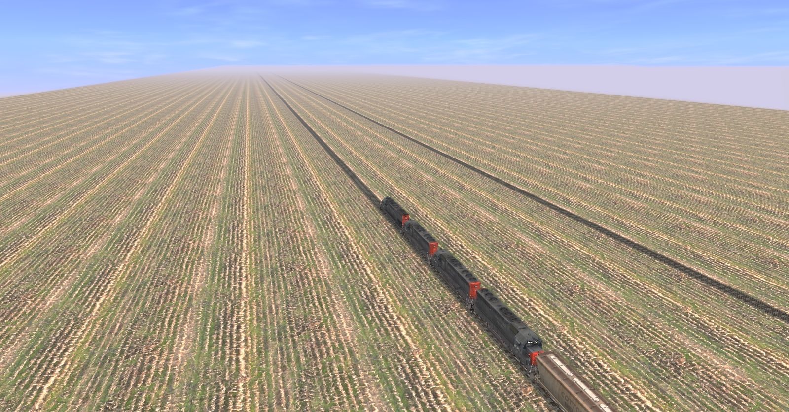 Tags: Trainz: A New Era, E Trains Railroad, E Trains RR - SP Freight Emergency, SP SD45, SP SD40T-2, EMD SD40T-2 DRGW #5350, EMD SD40T-2 DRGW #5353, EMD SD40T-2 DRGW #5357, SSW Centerflow 3 Bay long hatch, SSW Centerflow 3 Bay long hatch, BN #455335 3 Bay ACF, BN grain hopper 4 bay #481523, ADMX ACF Centerflow 4 Bay round hatch, CN grain hopper #388185