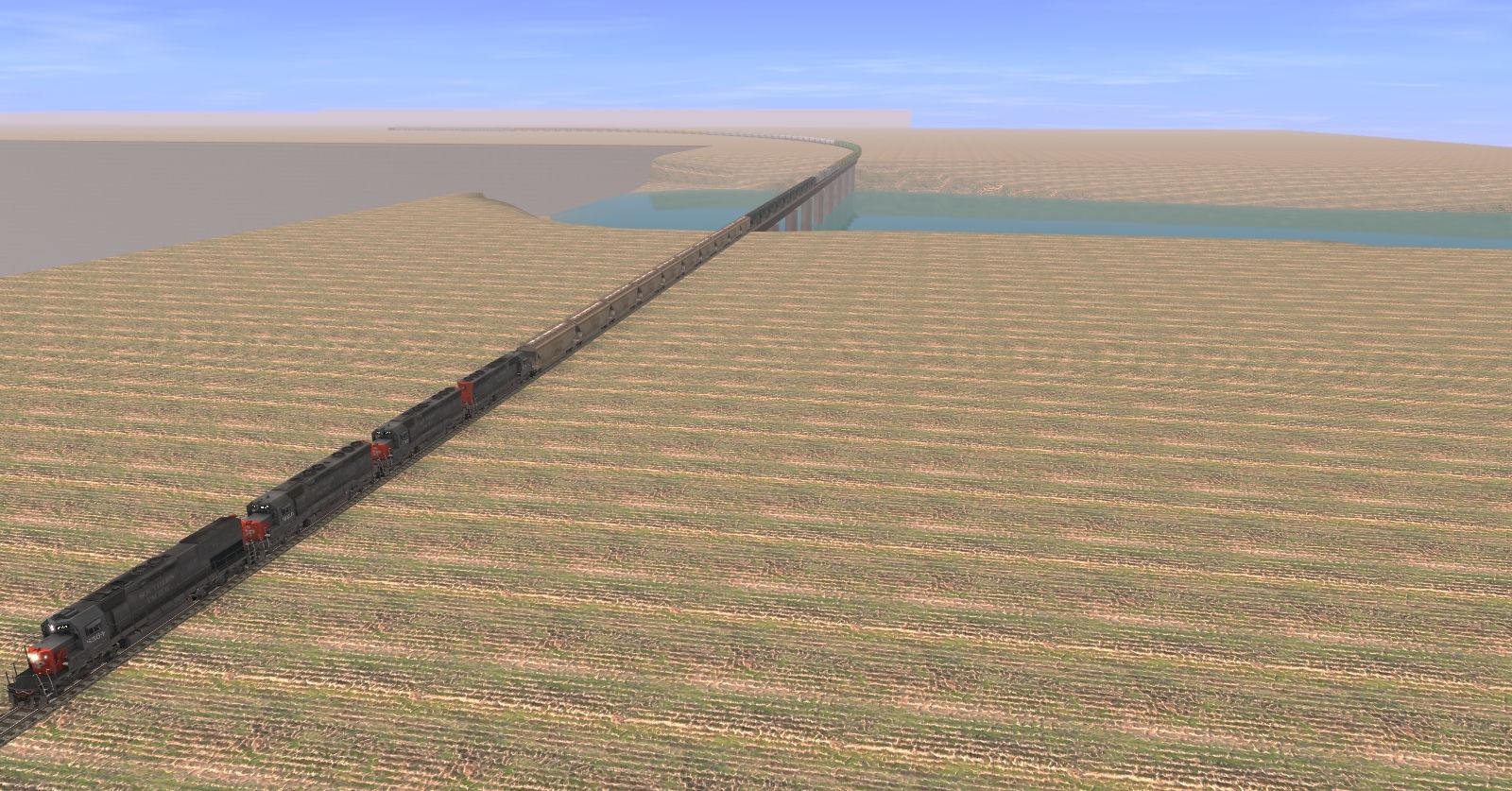 Tags: Trainz: A New Era, E Trains Railroad, E Trains RR - SP Freight Emergency, SP SD40T-2, SP SD45, SP C40-4 Caboose- late version ver. 3, SSW Centerflow 3 Bay long hatch, SSW Centerflow 3 Bay long hatch, SSW PS 2bay LO hopper, BN #455335 3 Bay ACF, BN grain hopper 4 bay #481523, ADMX ACF Centerflow 4 Bay round hatch, CN grain hopper #388185, CNW ACF Centerflow 4 Bay long hatch