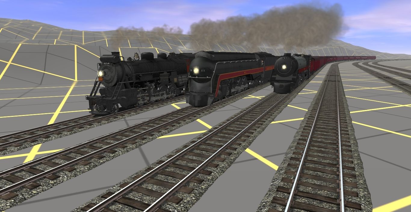 Tags: Trainz: A New Era, Locomotive Testing Route, CN S1b Engine, N&W J Class Engine, CP T1c Selkirk Engine, CN S1b Tender, N&W J Class Tender, CN 01 Steel Baggage, CP T1c Selkirk Tender, N&W J Class Aux Tender, CP Baggage Dorm, N&W Tool Car #1407, CN 02 Steel Combine