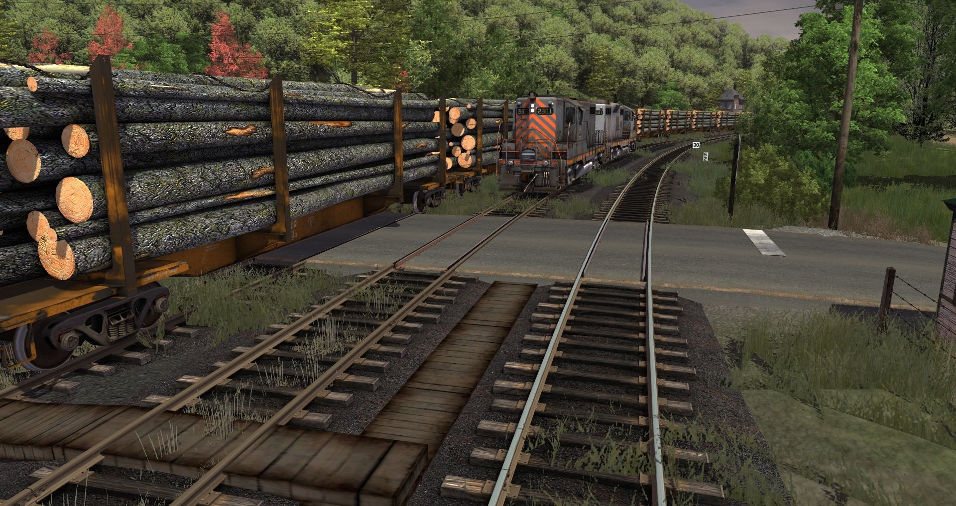 Posted by: iamgrubby | Posted:2017-11-24 16:33:06 Caption: Tags: Trainz: A New Era, Coal Country, RPPX GP9 high, RPPX GP9 chop nose, SVLX Log Rack Yellow, RPPX Shoving Platform