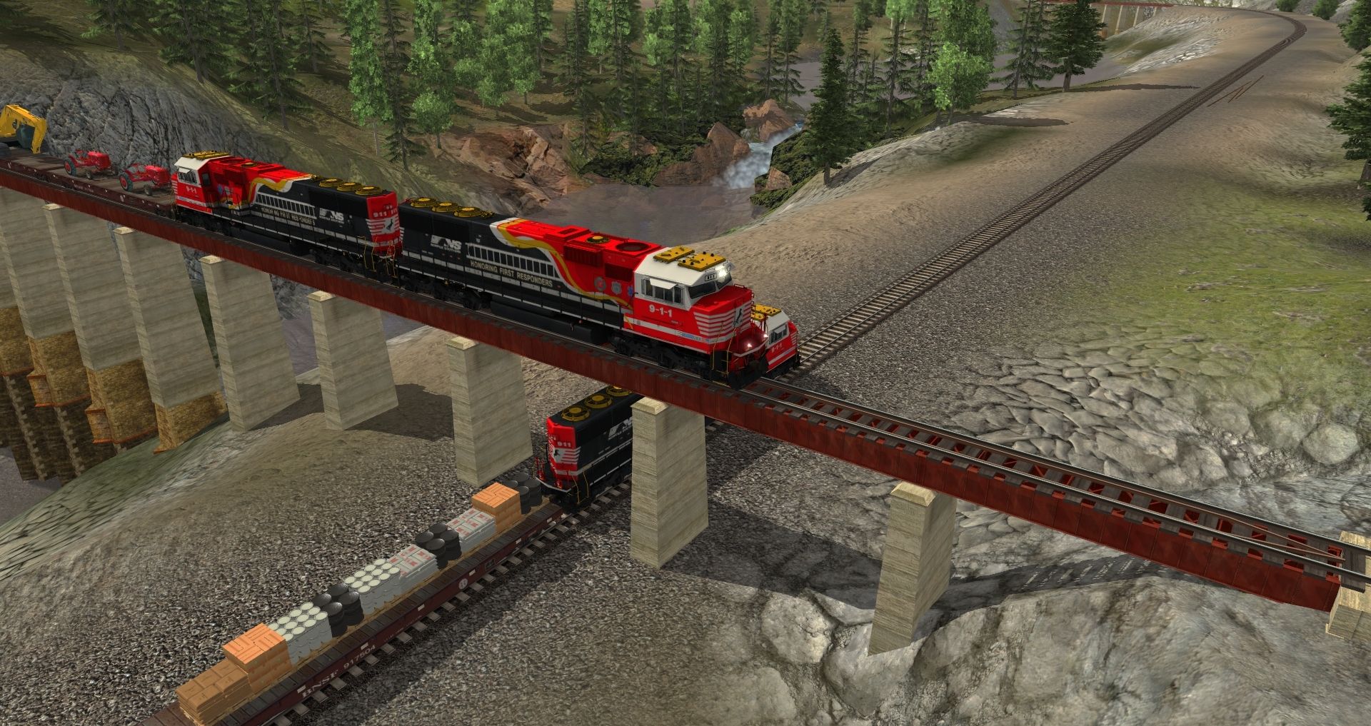 Tags: Trainz: A New Era, Kickstarter County, NS SD60E First Responders, NS SD60E First Responders, BPRR 4 Bay Hopper 2, Flatcar BNSF 60ft #917504 TS12, Flatcar 53 ft Union Pacific DES
