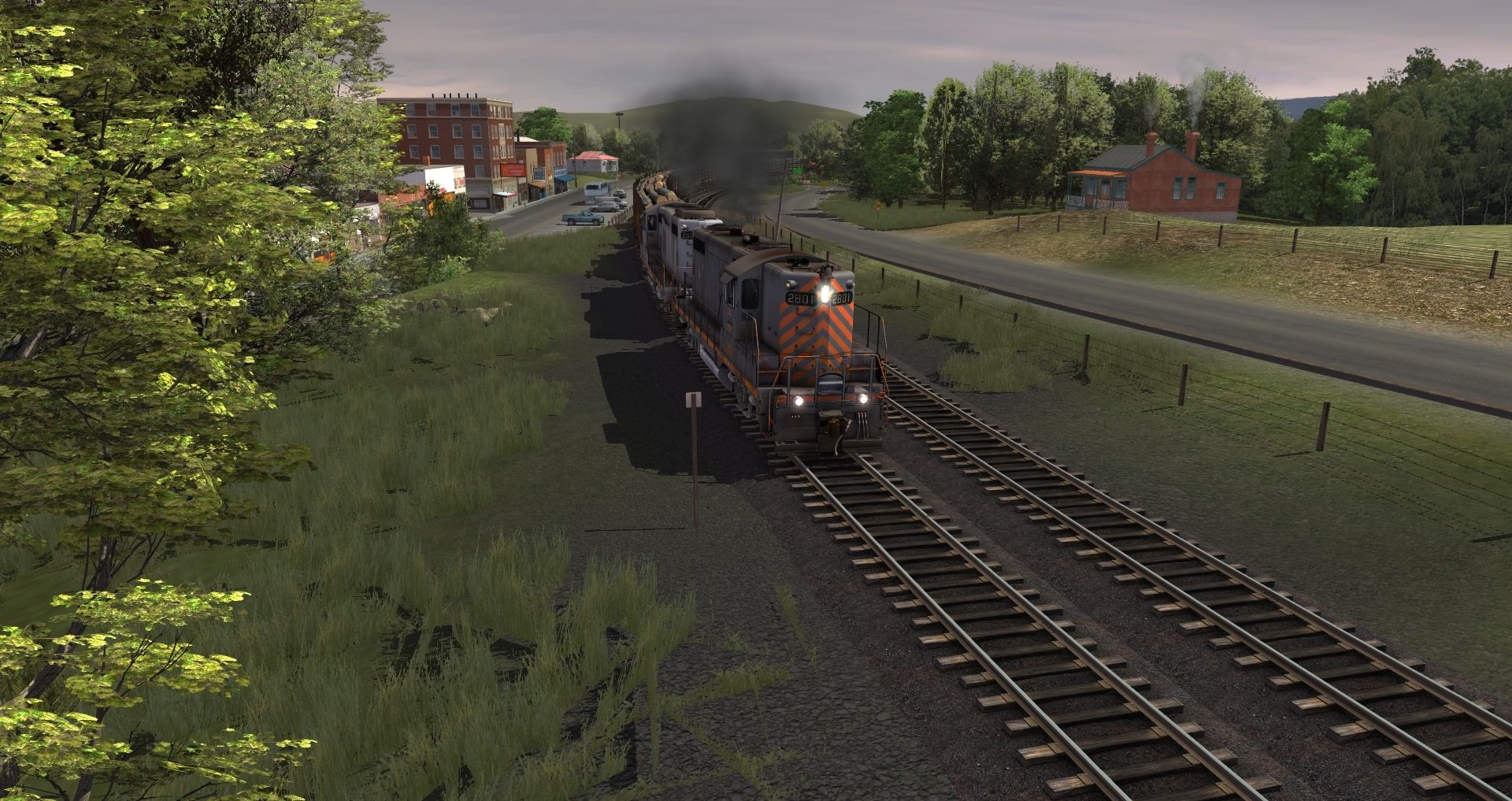 Posted by: iamgrubby | Posted:2017-11-24 17:15:25 Caption: Tags: Trainz: A New Era, Coal Country, RPPX GP9 high, RPPX GP9 chop nose, SVLX Log Rack Yellow, RPPX Shoving Platform