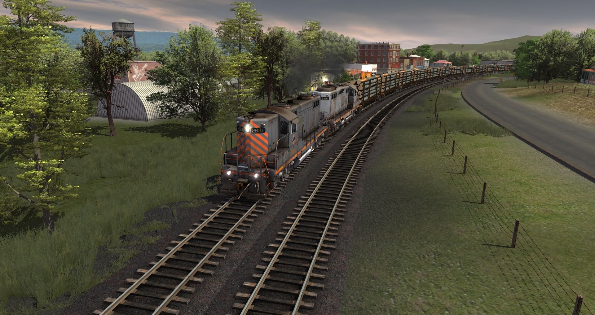 Posted by: iamgrubby | Posted:2017-11-24 17:16:57 Caption: Tags: Trainz: A New Era, Coal Country, RPPX GP9 high, RPPX GP9 chop nose, SVLX Log Rack Yellow, RPPX Shoving Platform