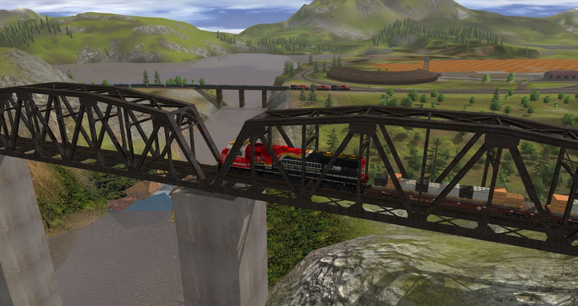 Tags: Trainz: A New Era, Kickstarter County, NS SD60E First Responders, NS SD60E First Responders, Flatcar BNSF 60ft #917504 TS12, BPRR 4 Bay Hopper 2, Flatcar 53 ft Union Pacific DES, Oil Tanker UTLX 60 Ft