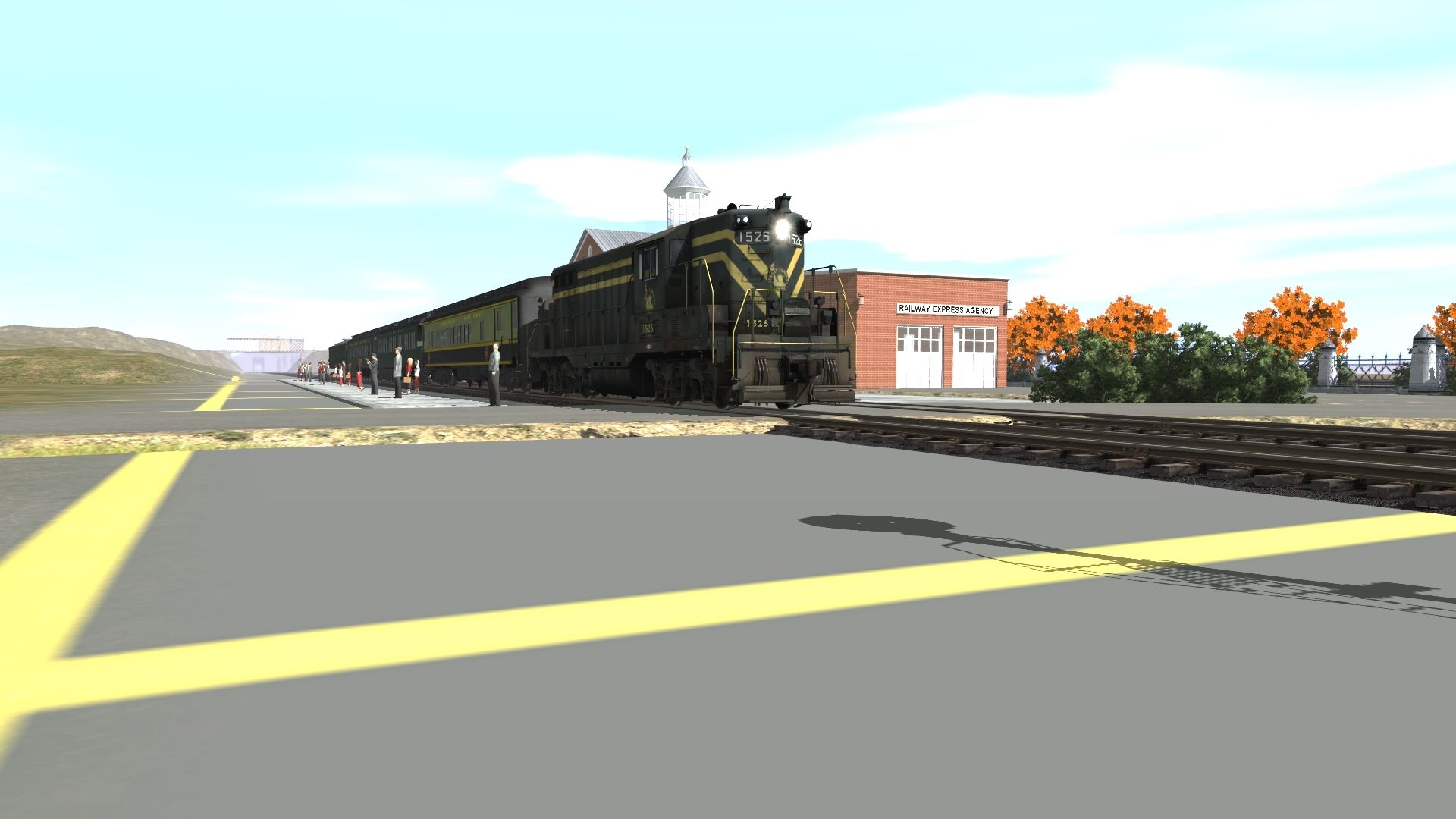 Caption: Local passenger train, led by 1526, stops at one of many historic stations along the route.