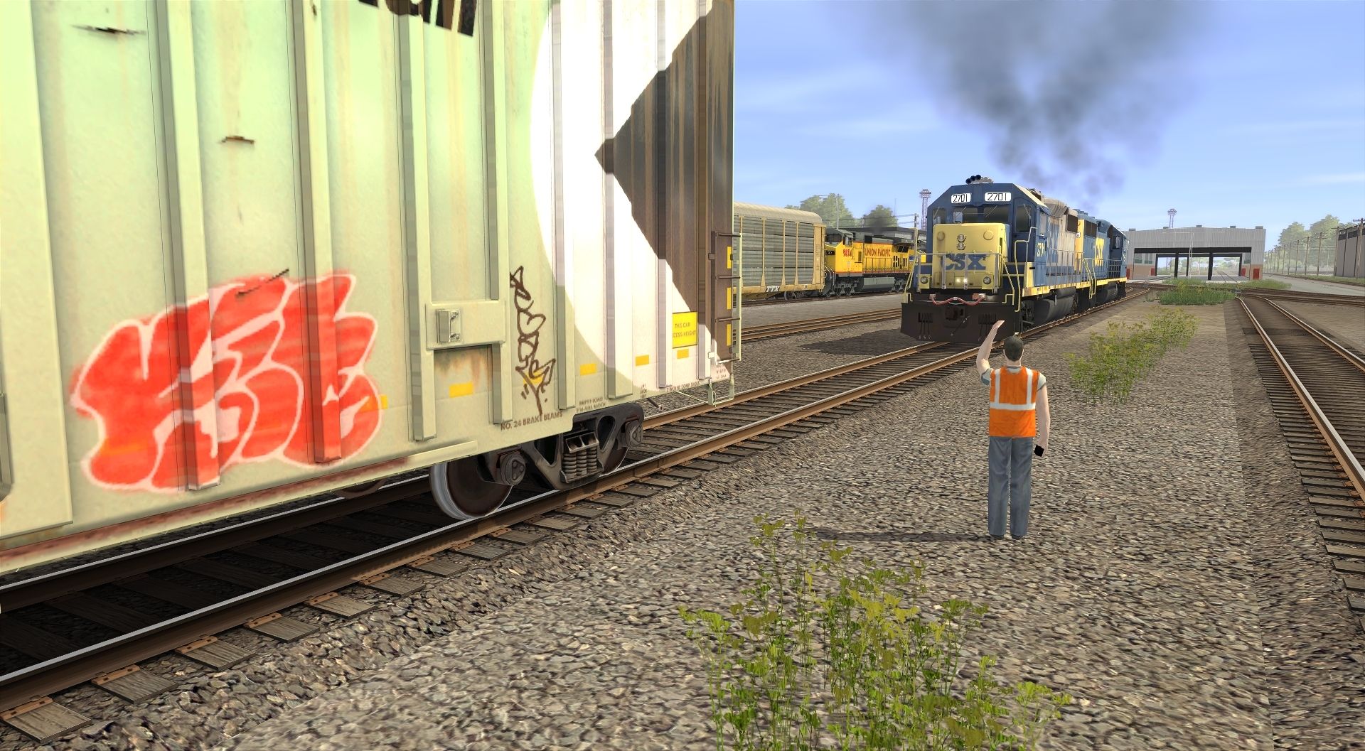 Posted by: whamm0 | Posted:2017-11-26 09:08:40 Caption: Bob is still signaling to the yard switcher...looks like Larry the driver is sleeping on the job again. Tags: