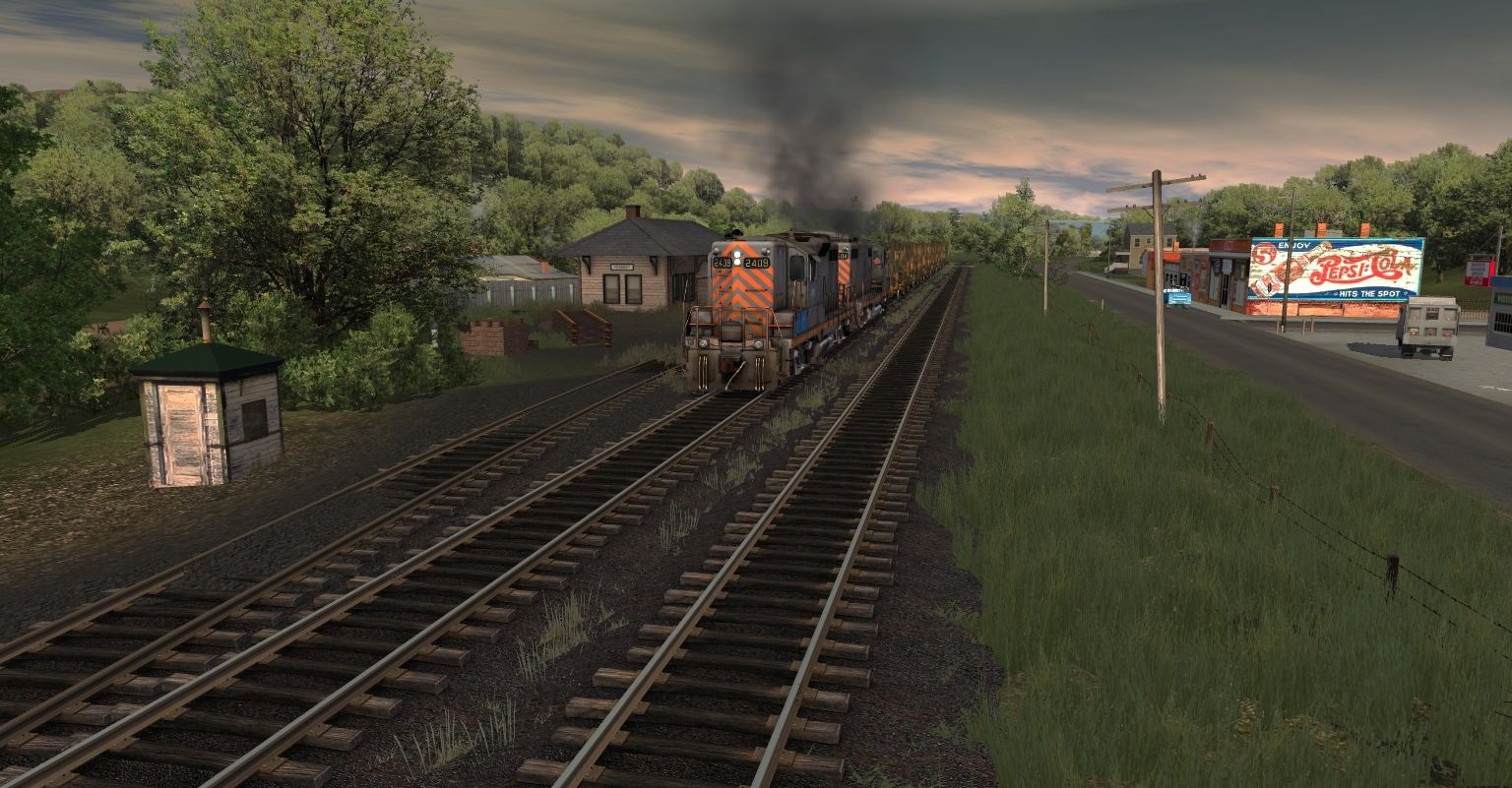 Tags: Trainz: A New Era, Coal Country, Log Service, RPPX GP18 (ex-CR), RPPX GP9 high, RPPX Transfer Caboose, 52ft Gondola CEFX 1, SVLX Log Rack Yellow, RPPX 100 Ton Hopper, 73ft Centerbeam TTX 3, 73ft Centerbeam TTX 2, 73ft Centerbeam NOKL