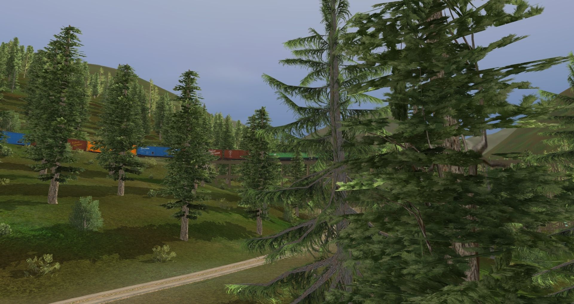 Tags: Trainz: A New Era, Milwaukee Road Avery-Drexel, Northern Pacific's Lookout Pass Line (summer time), TUME-71402175-SD40-2-BN, TUME-300598-Flatcar-UP, TUME-300514-Boxcar-50ft-CN, TUME-300513-Boxcar-50ft-CN, TUME-300584-Centerbeam-UP, TUME-300509-Boxcar-50ft-UP, TUME-300510-Boxcar-50ft-UP, TUME-300512-Boxcar-50ft-GN, TUME-300583-Centerbeam-WP, TUME-300599-Logging-Flatcar-UP, TUME-300596-Logging-Flatcar-UP