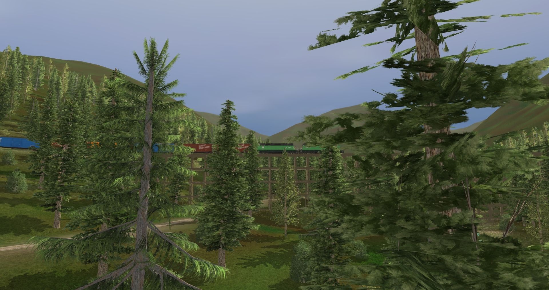 Tags: Trainz: A New Era, Milwaukee Road Avery-Drexel, Northern Pacific's Lookout Pass Line (summer time), TUME-71402175-SD40-2-BN, TUME-300512-Boxcar-50ft-GN, TUME-300510-Boxcar-50ft-UP, TUME-300509-Boxcar-50ft-UP, TUME-300513-Boxcar-50ft-CN, TUME-300598-Flatcar-UP, TUME-300514-Boxcar-50ft-CN, TUME-300584-Centerbeam-UP, TUME-300583-Centerbeam-WP, TUME-300599-Logging-Flatcar-UP, TUME-300596-Logging-Flatcar-UP