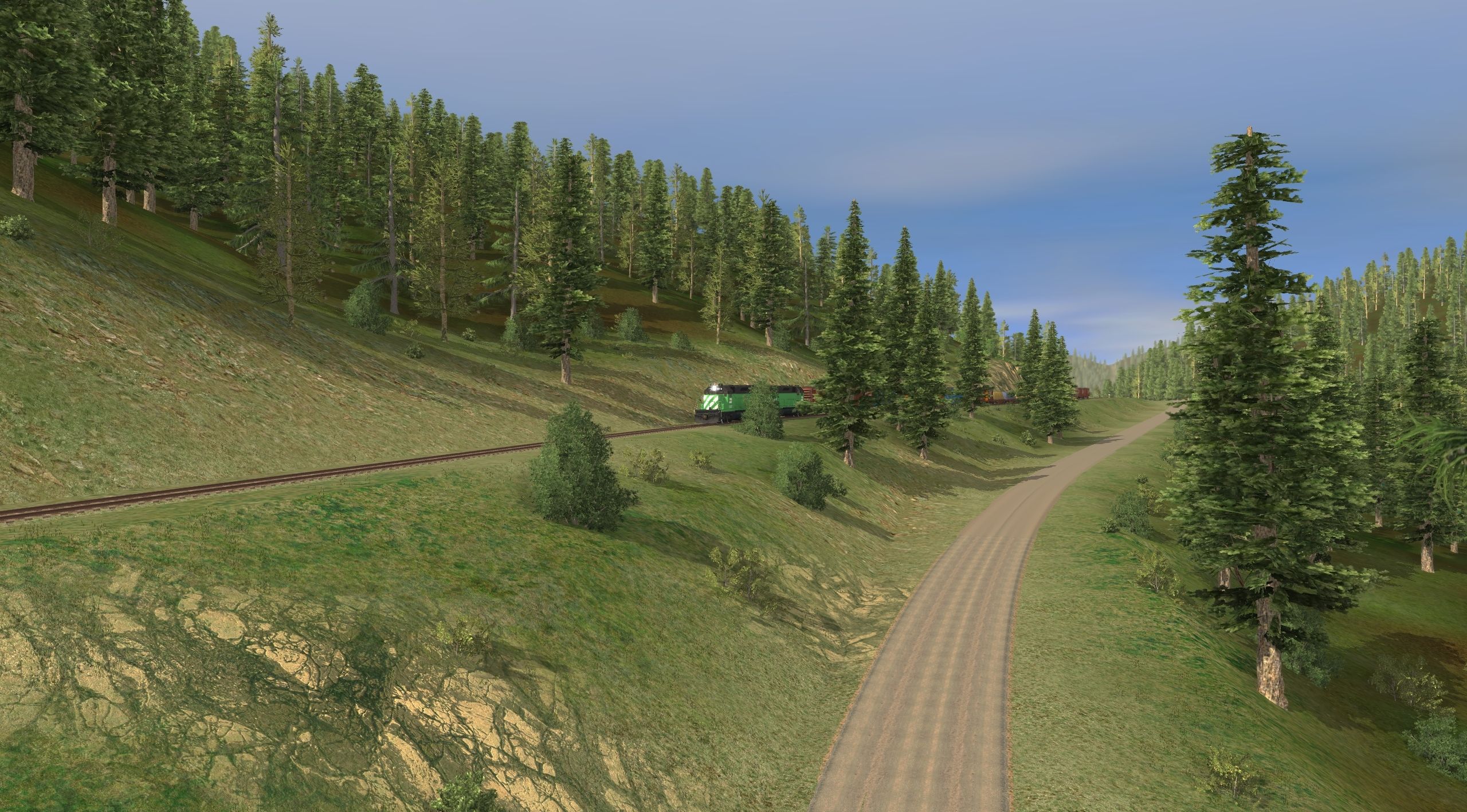Tags: Trainz: A New Era, Milwaukee Road Avery-Drexel, Northern Pacific's Lookout Pass Line (summer time), TUME-71402175-SD40-2-BN, TUME-300512-Boxcar-50ft-GN, TUME-300510-Boxcar-50ft-UP, TUME-300509-Boxcar-50ft-UP, TUME-300513-Boxcar-50ft-CN, TUME-300514-Boxcar-50ft-CN, TUME-300598-Flatcar-UP, TUME-300584-Centerbeam-UP, TUME-300583-Centerbeam-WP, TUME-300599-Logging-Flatcar-UP, TUME-300596-Logging-Flatcar-UP