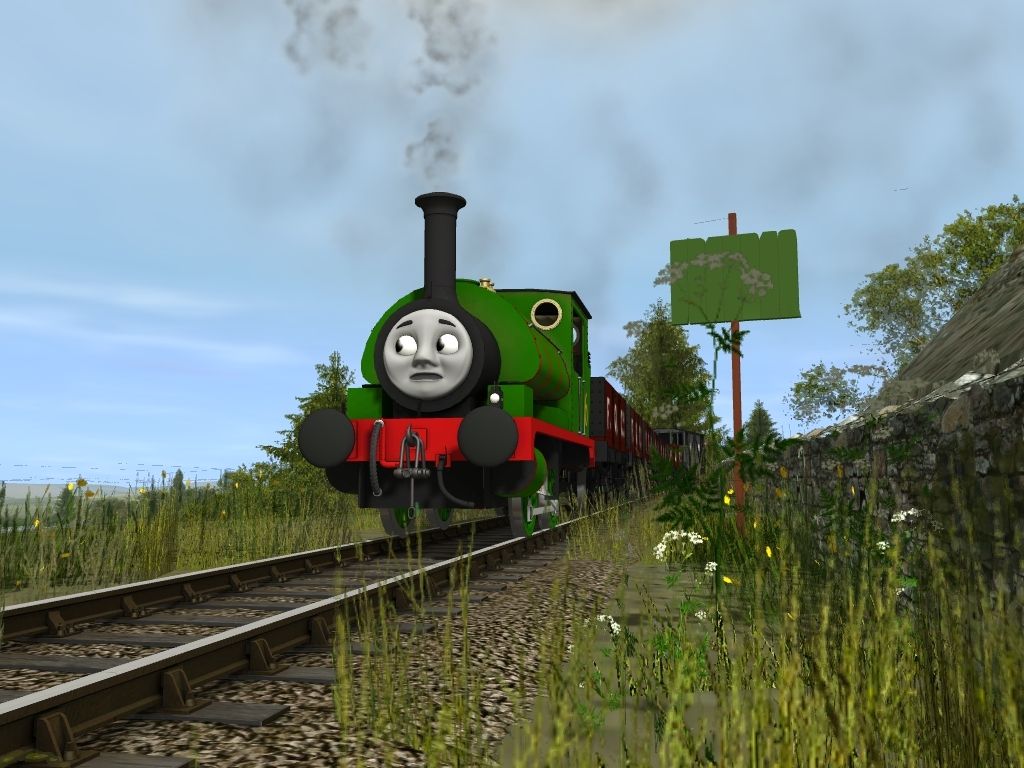 Posted by: Cawam | Posted:2017-12-02 10:21:39 Caption: Tags: Trainz: A New Era, Rws Ffarquhar branch - Quarry, Default, Flying Cam, NWR No.6 'Percy, NWR 4 Plank FQC Wagon Red, NWR Brake Van