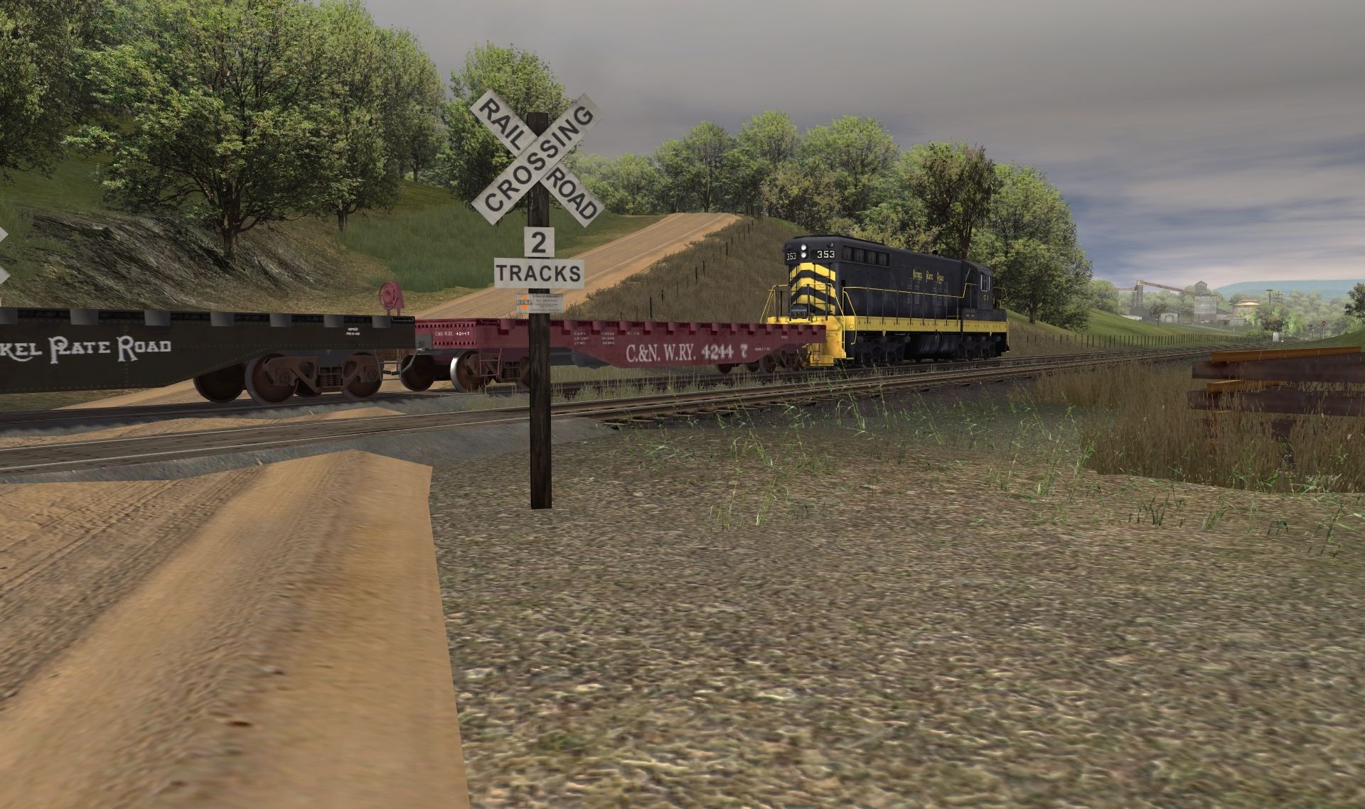 Tags: Trainz: A New Era, Coal Country, 1, NKP SD9 clean skin, PRR GP9 early, PRR GP9 late, Flatcar50ft Nickel Plate Road 2 h#, Flatcar50ft C&N W RY h#, NW 100 Ton Hopper 1, NW 100 Ton Hopper 2, NKP Caboose 400 Series, Log Wagon Short Knuckle