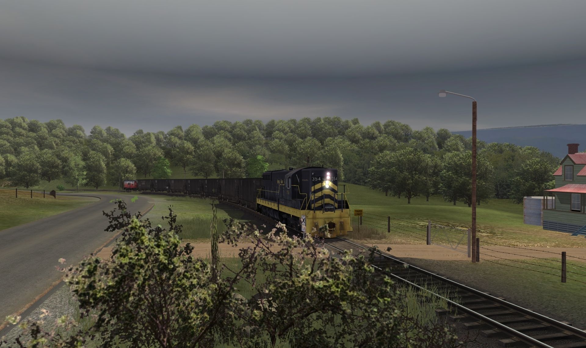 Tags: Trainz: A New Era, Coal Country, 1, NKP SD9 clean skin, NW 100 Ton Hopper 1, NW 100 Ton Hopper 2, NKP Caboose 400 Series, Log Wagon Short Knuckle