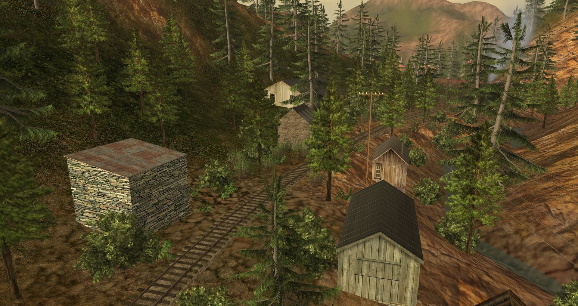Tags: Trainz: A New Era, Berseria Northern RR, Default, C&S No. 5, 30in 3-Truck Shay, Double hut fixed wagon, Dormitory/Bunk house on wagon, 30ng Boxcar 30 foot, C&S Combine 20, WP&Y_Flatcar_5, C&S Gondola 4419