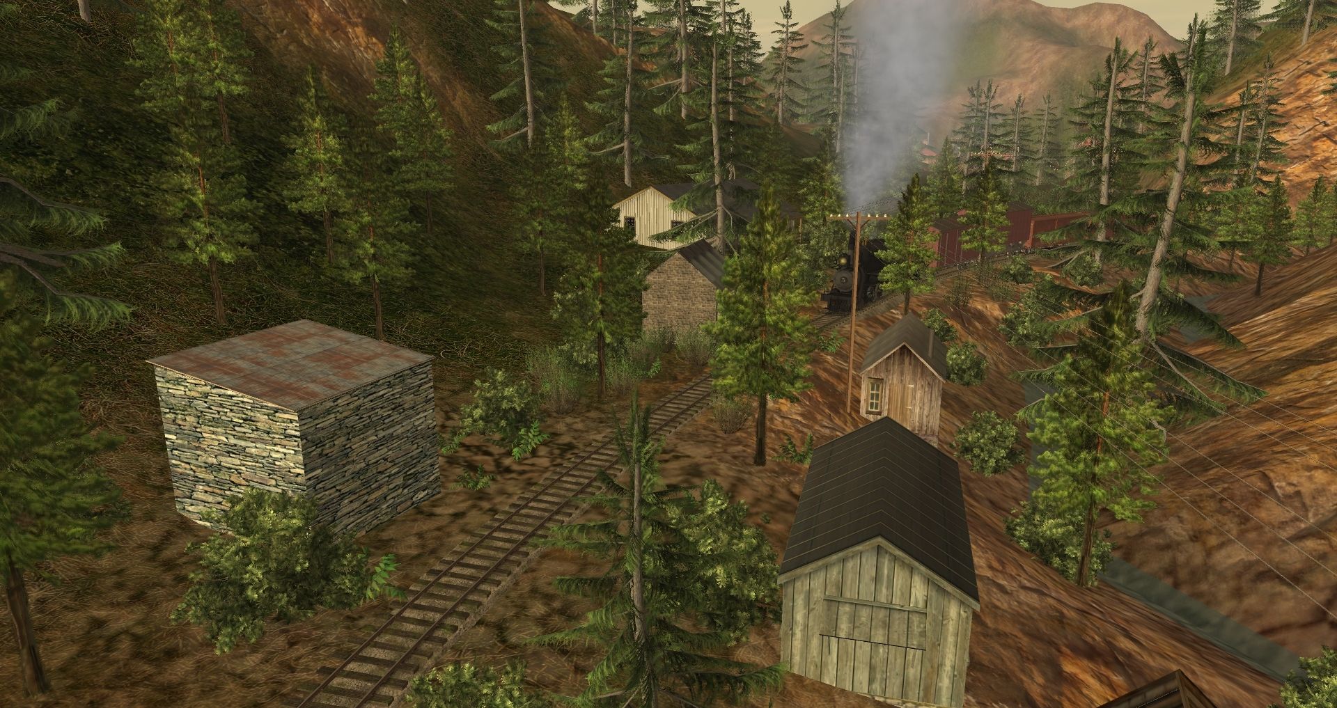 Tags: Trainz: A New Era, Berseria Northern RR, Default, C&S No. 5, 30in 3-Truck Shay, C&S No. 5 Tender, Double hut fixed wagon, Dormitory/Bunk house on wagon, 30ng Boxcar 30 foot, C&S Combine 20, WP&Y_Flatcar_5, C&S Gondola 4419