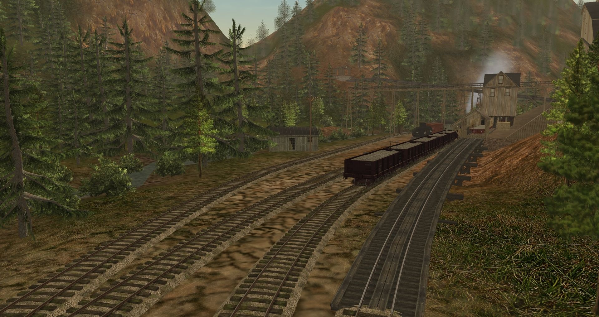 Tags: Trainz: A New Era, Berseria Northern RR, Default, C&S No. 5, C&S Gondola 4419, 30in Work Flatcar, 36NG 25' flatcar (NCNG), WP&Y_Tankcar_28, 30ng Boxcar 30 foot, Double hut fixed wagon, Dormitory/Bunk house on wagon, C&S Combine 20