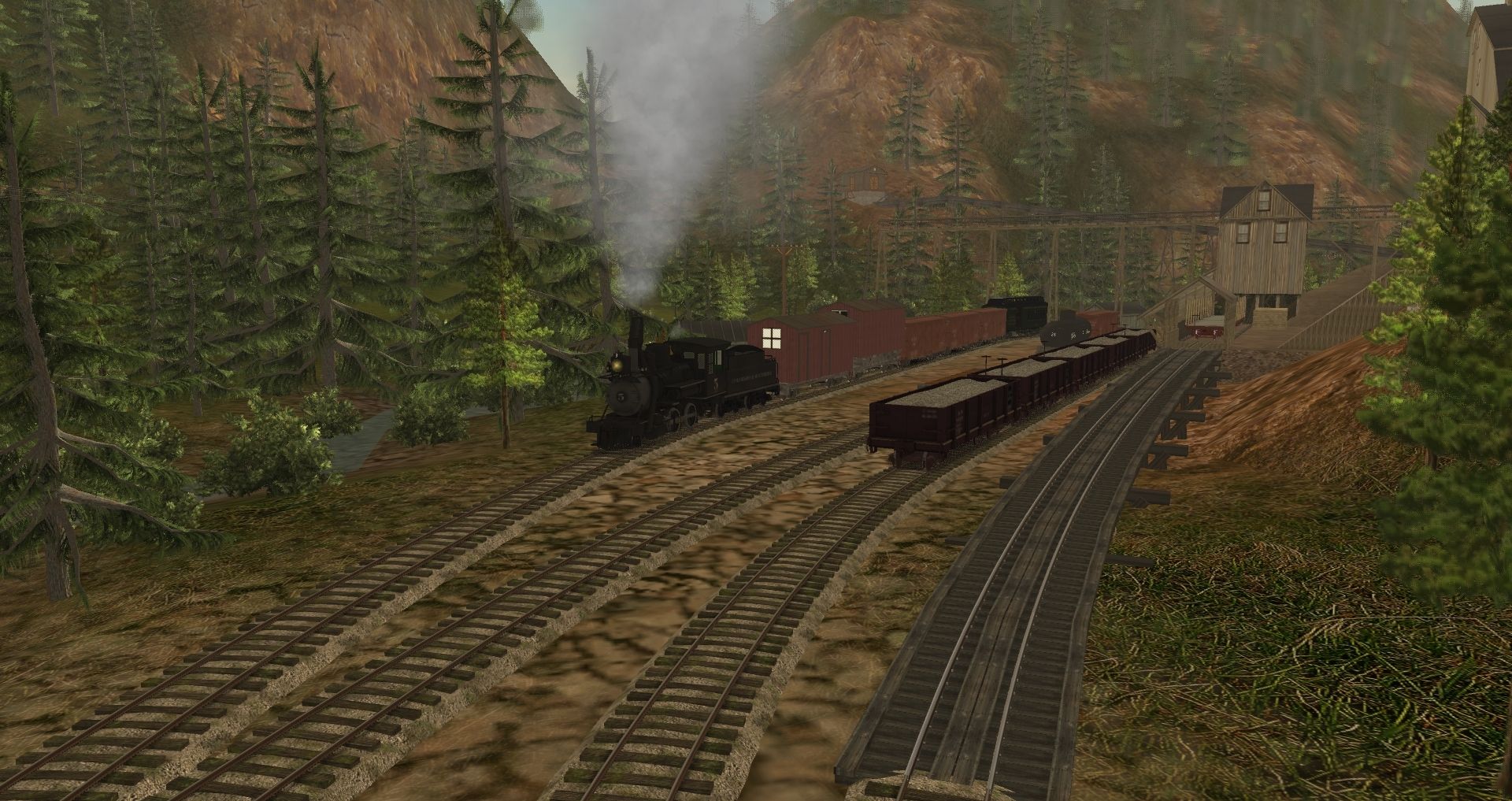 Tags: Trainz: A New Era, Berseria Northern RR, Default, C&S No. 5, C&S No. 5 Tender, C&S Gondola 4419, Double hut fixed wagon, 30in Work Flatcar, Dormitory/Bunk house on wagon, 36NG 25' flatcar (NCNG), WP&Y_Tankcar_28, 30ng Boxcar 30 foot, C&S Combine 20