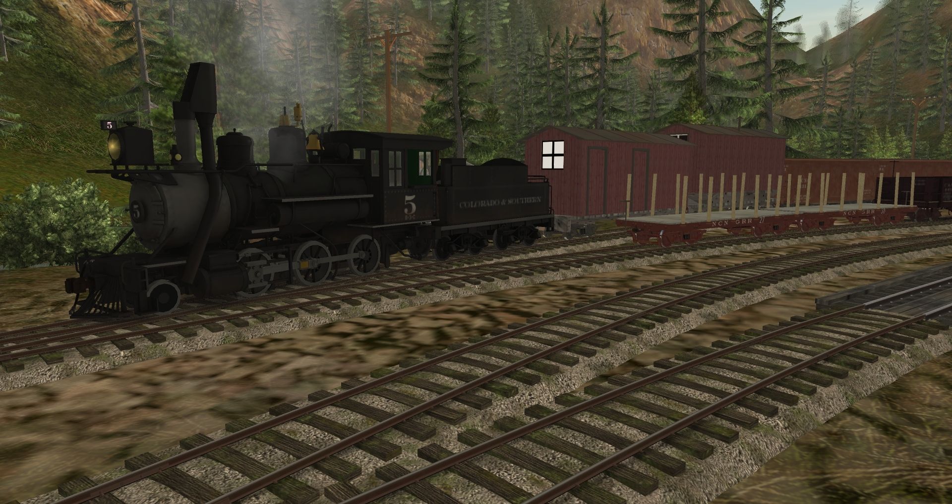 Tags: Trainz: A New Era, Berseria Northern RR, Default, C&S No. 5, C&S No. 5 Tender, 36NG 25' flatcar (NCNG), Double hut fixed wagon, Dormitory/Bunk house on wagon, C&S Gondola 4419, C&S Combine 20, WP&Y_Tankcar_28, 30ng Boxcar 30 foot, WP&Y_Hart_Gondola_316, WP&Y_Flatcar_2