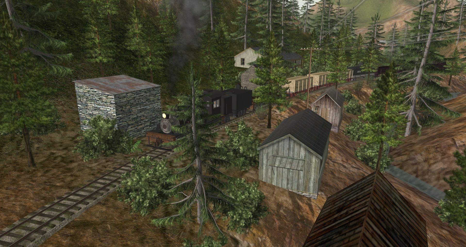 Tags: Trainz: A New Era, Berseria Northern RR, Default, 30in 3-Truck Shay, 30in 3-Truck Shay Tender, WP&Y_Flatcar_5, 36NG 25' flatcar (NCNG), WP&Y_Tankcar_36, C&S Gondola 4419, 30ng Boxcar 30 foot