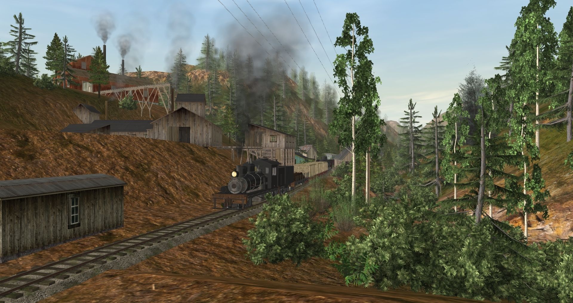 Tags: Trainz: A New Era, Berseria Northern RR, Default, 30in 3-Truck Shay, 30in 3-Truck Shay Tender, WP&Y_Flatcar_5, 36NG 25' flatcar (NCNG), WP&Y_Tankcar_36, C&S Gondola 4419