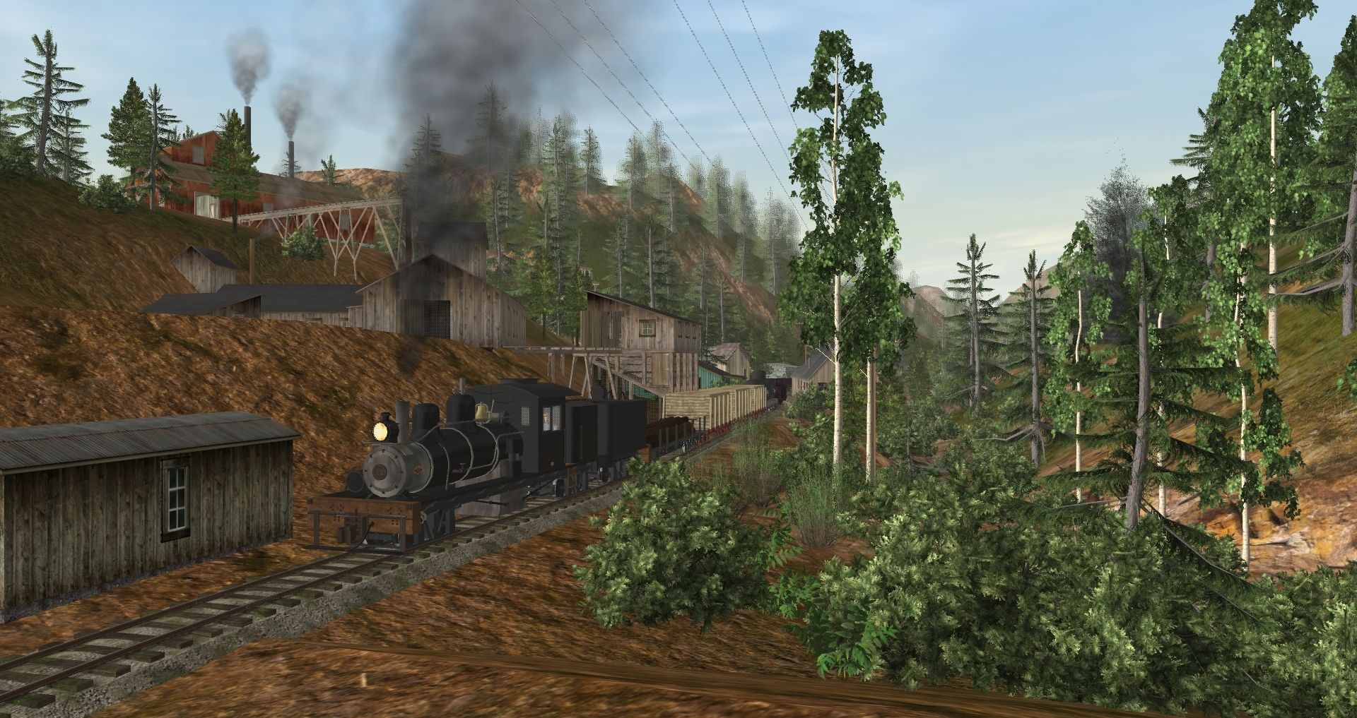 Tags: Trainz: A New Era, Berseria Northern RR, Default, 30in 3-Truck Shay, 30in 3-Truck Shay Tender, WP&Y_Flatcar_5, 36NG 25' flatcar (NCNG), WP&Y_Tankcar_36, C&S Gondola 4419