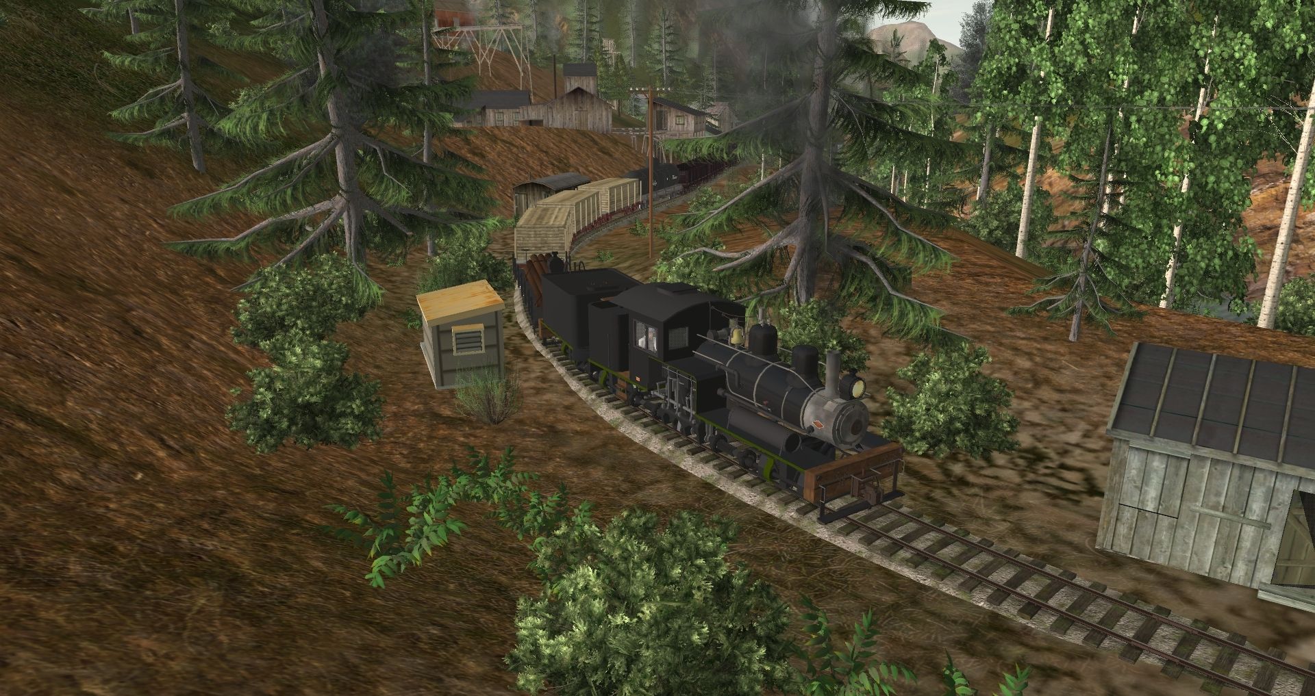 Tags: Trainz: A New Era, Berseria Northern RR, Default, 30in 3-Truck Shay, 30in 3-Truck Shay Tender, WP&Y_Flatcar_5, 36NG 25' flatcar (NCNG), WP&Y_Tankcar_36, C&S Gondola 4419