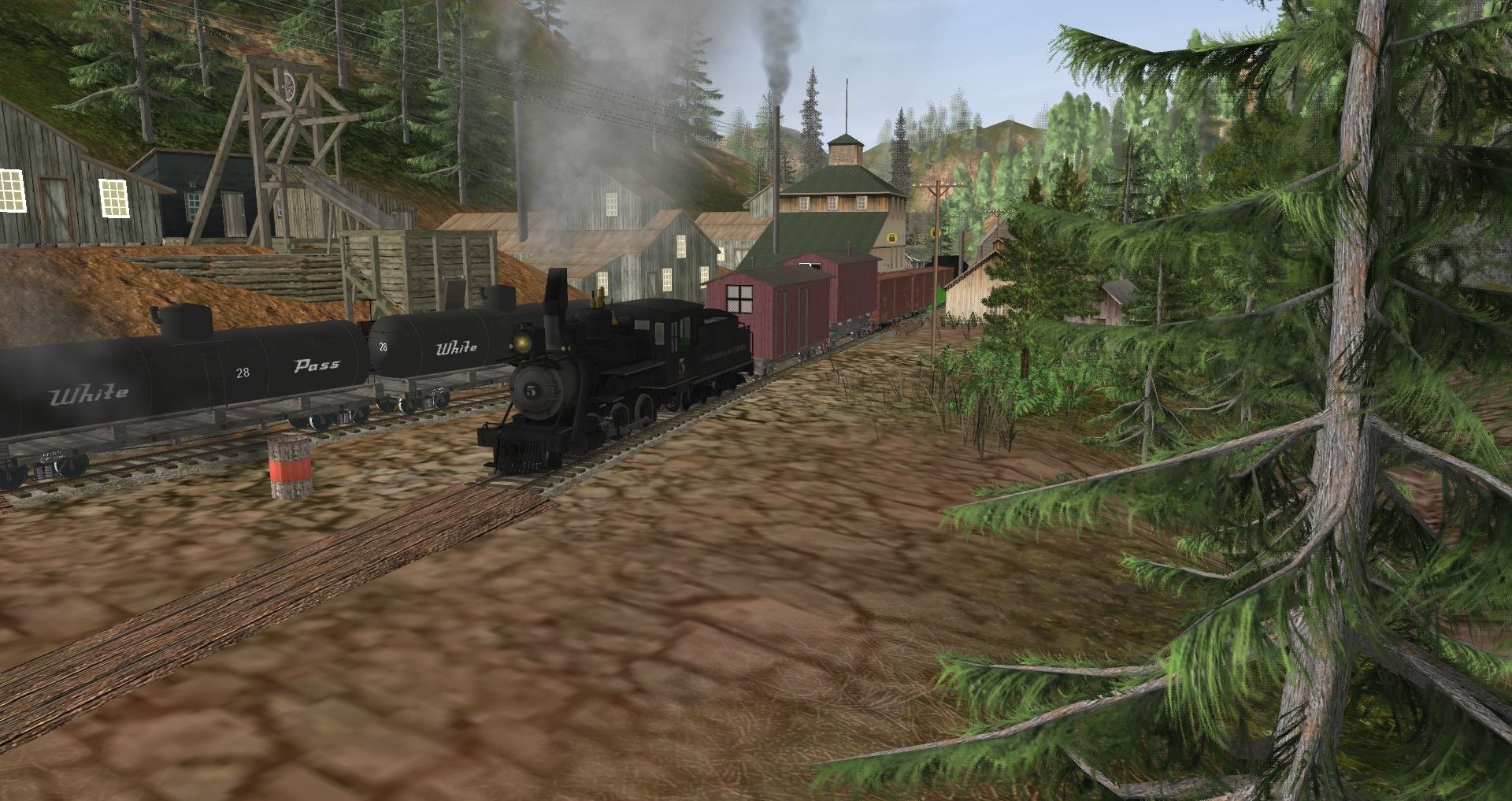 Tags: Trainz: A New Era, Berseria Northern RR, Default, C&S No. 5, 30in 3-Truck Shay, WP&Y_Flatcar_2, WP&Y_Tankcar_28, C&S Gondola 4419, C&S No. 5 Tender, 36 Turtle Creek boxcar, Double hut fixed wagon, WP&Y_Hart_Gondola_316, 36 NCNG box car 30FT, Dormitory/Bunk house on wagon