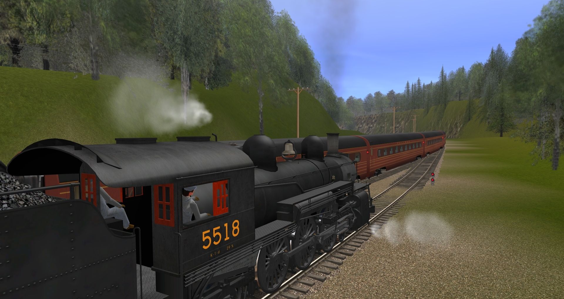Tags: Trainz: A New Era, Uniondale Shortline, CN K1d Engine, PRR T1 1945, GP38-2 BNSF heritage HP02T, CNJ G3s Blue, CN K1d Tender V1, PRR FOM B70 Baggage, CN 01 Steel Baggage, PRR FOM PS18 Sleeper, PRR T1 1945 Tender, CN 02 Steel Combine, CN Lightweight Coach
