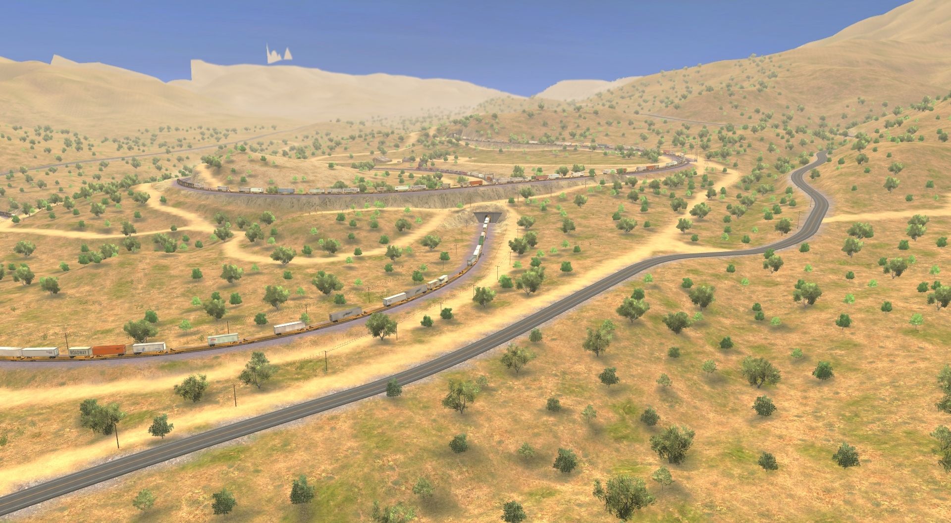 Tags: Trainz: A New Era, Mojave Sub Division, ATSF #991 East, ATSF SD45, ATSF GP60M, ATSF GP60B, ATSF B40-8W, TTX 89ft TOFC Flatcar, ATSF Ce-11 Caboose